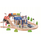 Tato moderní dřevěná vláčkodráha s motivem rušného města potěší každého malého strojvůdce i stavitele. Sada obsahuje vláček se třemi vagony, koleje včetně vyvýšeného nadjezdu, prostorné vlakové nádraží s přístřeškem, policejní auto, postavičky, dopravní značky, lampy, stromy a další detaily, které dotvářejí atmosféru skutečného města. Díky výškově rozmanitým kolejím a realistickému příslušenství si děti mohou hrát na různé dopravní situace, plánovat jízdu, stavět trasy nebo pomáhat obyvatelům města při cestování. Hra rozvíjí kreativitu, jemnou motoriku i prostorovou představivost. Ideální jako dárek nebo doplněk dětského pokojíčku.