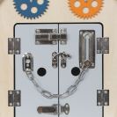 Od tkaniček až po hrající telefon! Tento nádherný interaktivní domeček je inspirovaný principy Montessori a přináší dětem nekonečné možnosti objevování a učení se hrou. Každá jeho strana nabízí nové dobrodružství, které rozvíjí jemnou motoriku, trpělivost, zvídavost a schopnost řešit problémy. Děti zde najdou různé druhy zámků, západek a háčků, které po odemknutí odhalí tajemná dvířka, spinner k roztočení, otočnou minutku, funkční vypínač se světýlkem, či barevný labyrint s rybičkou. Xylofon s paličkou seznámí děti s prvními tóny a rytmem, zatímco hodiny naučí porozumět času. Nechybí ani hrajicí telefon jenž Vás zabaví nejrůznějšími zvuky i veselými melodiemi!