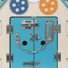 Od tkaniček až po hrající telefon! Tento nádherný interaktivní domeček je inspirovaný principy Montessori a přináší dětem nekonečné možnosti objevování a učení se hrou. Každá jeho strana nabízí nové dobrodružství, které rozvíjí jemnou motoriku, trpělivost, zvídavost a schopnost řešit problémy. Děti zde najdou různé druhy zámků, západek a háčků, které po odemknutí odhalí tajemná dvířka, spinner k roztočení, otočnou minutku, funkční vypínač se světýlkem, či barevný labyrint s rybičkou. Xylofon s paličkou seznámí děti s prvními tóny a rytmem, zatímco hodiny naučí porozumět času. Nechybí ani hrajicí telefon jenž Vás zabaví nejrůznějšími zvuky i veselými melodiemi!