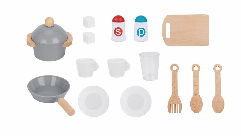 Kuchyňka je doplněna bohatým příslušenstvím, které zahrnuje hrnec s pokličkou, pánvičku, prkénko, kuchyňské náčiní v podobě 3 kusů vařeček, 2 talířky, 2 hrníčky, skleničku, solničku, pepřenku, dvě kostky „ledu“ a hodiny s otočnými ručičkami. Díky tomu mají malí kuchaři vše potřebné k přípravě i servírování svých kuchařských výtvorů.
