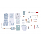 Znáte výšku svého pacienta? Ne? Pak ho změřte! Změřte mu i tlak nebo teplotu, poslechněte si ho a vše důkladně zapište do karty pacienta. Můžete také zkontrolovat zrak či sluch a nezapomeňte se podívat na rentgenové snímky na funkční podsvícené desce! Sada obsahuje stůl pro vyšetření a zákroky s úložným prostorem a nástroje nezbytné pro práci lékaře. Stetoskop, tlakoměr, teploměr, pinzetu, krabičky na léky a krémy, nůžky, infúzi, 4 RTG snímky, otoskop, injekční stříkačku, kladívko, karty pacientů, kartičky s léky, tabulku pro kontrolu zraku a informativní letáčky.
