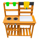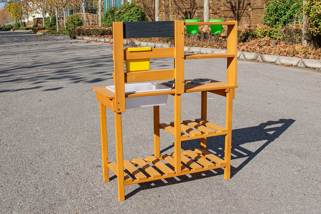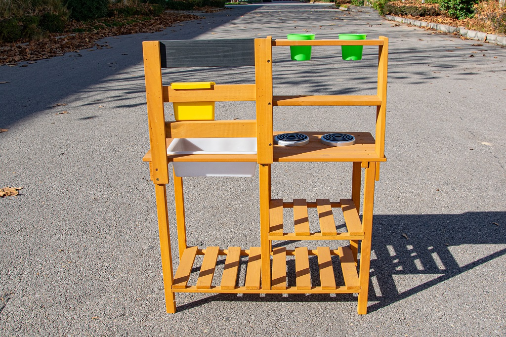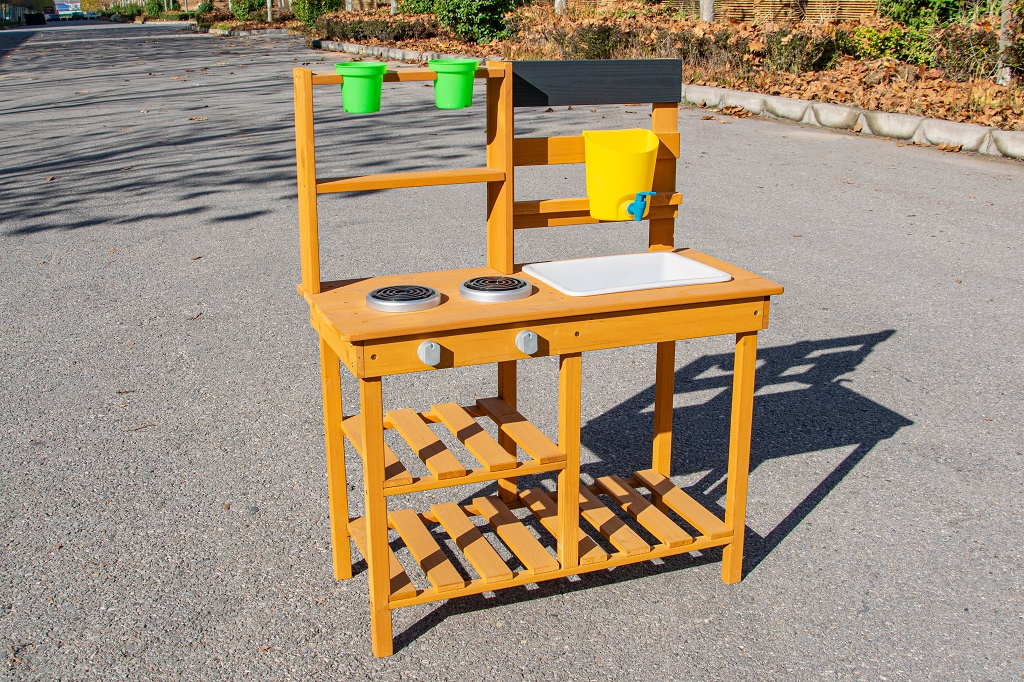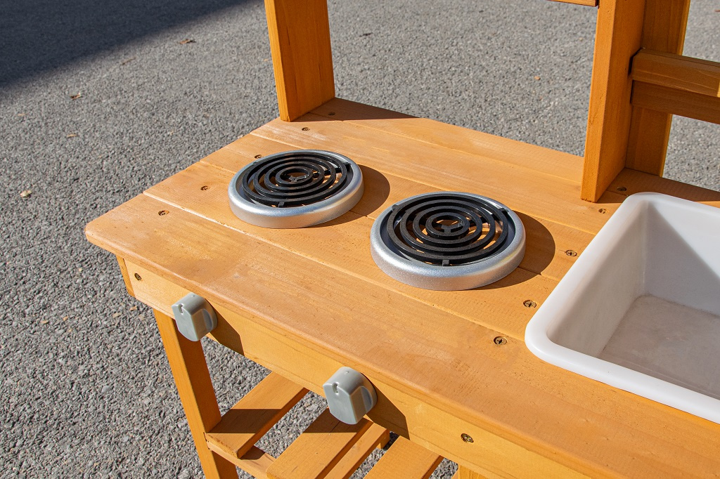 Dopřejte dětem svačinku přímo pod širým nebem a v objetí přírody. Na místě, kde pokrmy voní svěžím vánkem a slunce opéká bochníky z písku a vody, vzniká prostor pro hru plnou fantazie. Tato zahradní kuchyňka nabízí skvělou příležitost, jak u dětí rozvíjet kreativitu, samostatnost a kulinářské dovednosti při hře na čerstvém vzduchu.