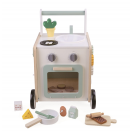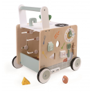 Dřevěné chodítko od 2Kids Toys je hravý pomocník pro první krůčky i kulinářské dobrodružství! Objevte kouzelné spojení kuchyňky a chodítka v jednom! Tento multifunkční dřevěný pomocník nejen podpoří Vaše dítě při jeho prvních krocích, ale zároveň rozvine jeho fantazii a jemnou motoriku. Ideální hračka pro malé kuchařky a kuchaře, kteří právě objevují svět! Chodítko nabízí také úložný prostor na hračky nebo kuchyňské náčiní. Navíc otočné knoflíky na troubě vydávají cvakavý zvuk! Na čtyřech stranách chodítka naleznete hry jako vkládání tvarů (potravin), otáčení ozubených koleček, zeleninový labyrint, troubu s plotýnkou nebo dřez s baterií. Chodítko má pogumovaná kola a je tak tiché a zároveň bezpečné. Dvířka trouby jsou otevíratelné. Robustní konstrukce ze dřeva se stabilním rámem zajišťuje bezpečnost při chození a dlouhou životnost.