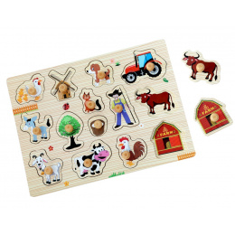Krásné vkládací puzzle na pevné desce přináší kouzlo života na venkově přímo do dětských rukou! Děti se mohou seznámit se zvířátky na farmě prostřednictvím 14 vkládacích dílků, které lze snadno uchopit. Skládačka podporuje rozvoj jemné motoriky, koordinace ruka-oko a zároveň učí poznávat zvířátka a prostředí na farmě. Díky pevnému dřevěnému provedení je puzzle odolné a vydrží i časté používání malými dětmi.