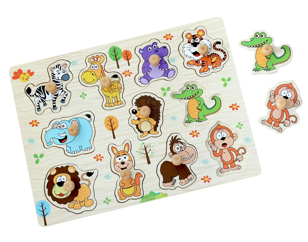 Krásné vkládací puzzle na pevné desce přináší kouzlo života v divočině přímo do dětských rukou! Děti se mohou seznámit se zvířátky na safari prostřednictvím 11 vkládacích dílků, které lze snadno uchopit. Skládačka podporuje rozvoj jemné motoriky, koordinace ruka-oko a zároveň učí rozpoznávat divoká zvířátka. Díky pevnému dřevěnému provedení je puzzle odolné a vydrží i časté používání malými dětmi.