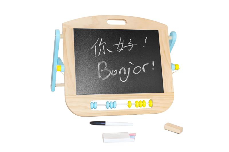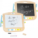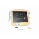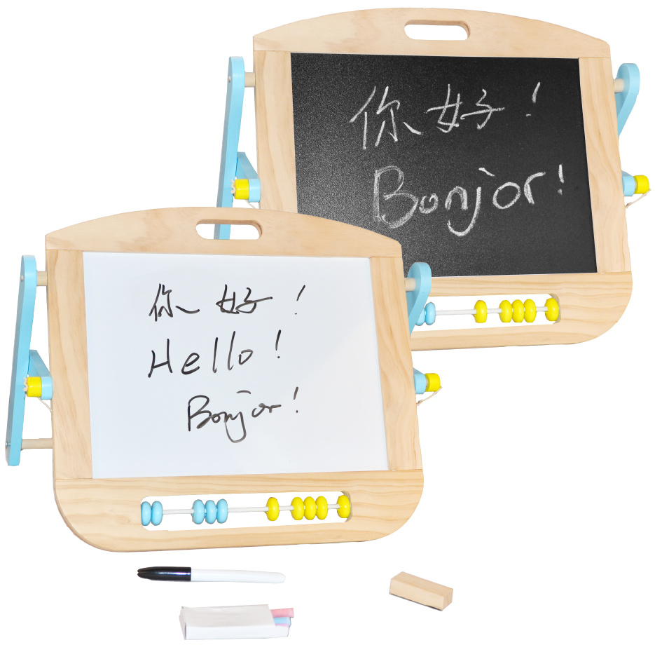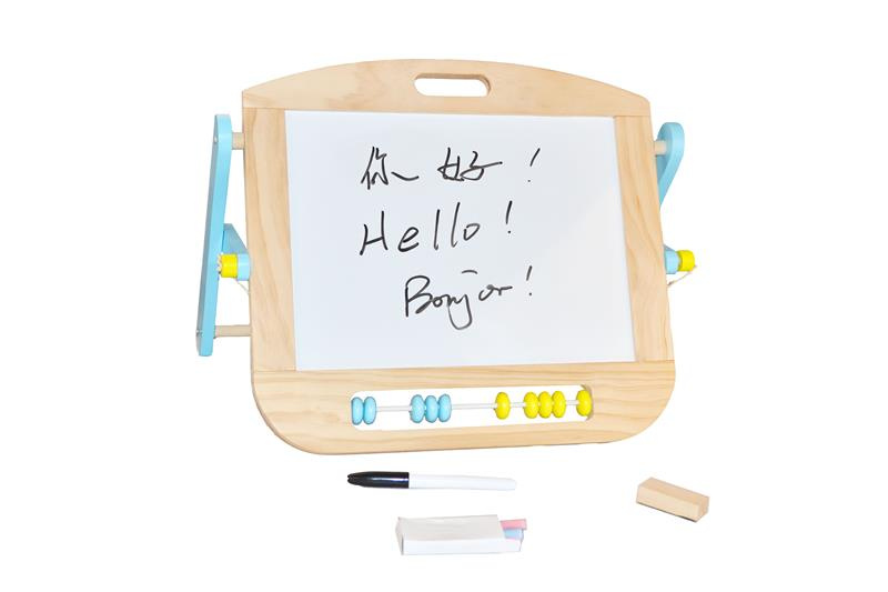 S touto stolní oboustrannou tabulí lze snadno rozvíjet kreativní umělecké dovednosti dětí. Z jedné strany magnetická tabule se suchým stíráním fixů, z druhé strany tradiční tabule pro křídu. Fix, křídy a plstěná houba je součástí balení. Tato tabule má také malé dvoubarevné počítadlo pro rané učení počítání. Tato dřevěná, dvoustranná, multifunkční nástěnka se jistě stane nepostradatelným společníkem Vašeho dítěte.
