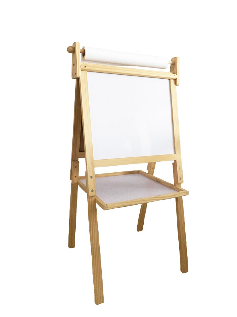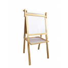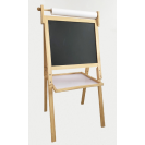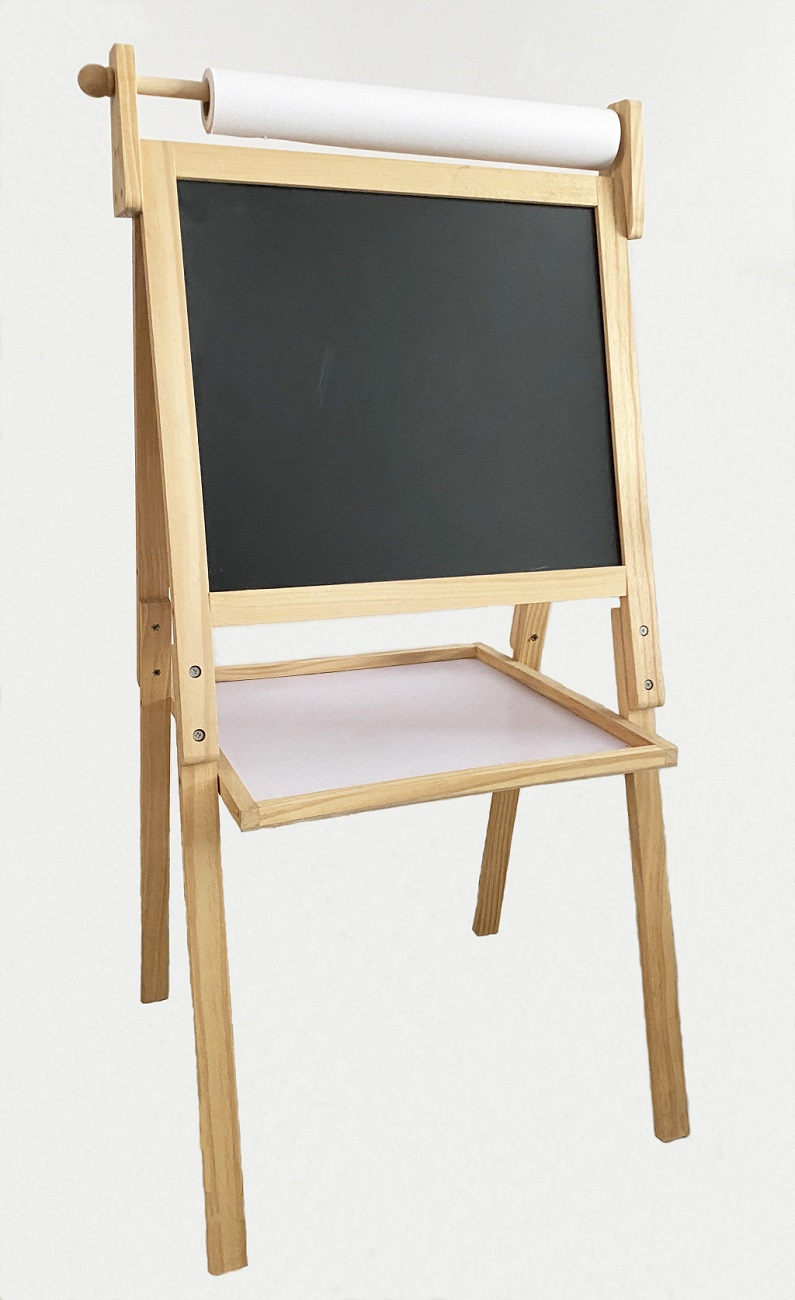 S touto velkou oboustrannou tabulí lze snadno rozvíjet kreativní umělecké dovednosti dětí. Z jedné strany magnetická tabule se suchým stíráním fixů, z druhé strany tradiční tabule pro křídu. Součástí je role papíru, fix, křídy a plstěná houba. Tabule je vybavena velkým odkládacím či úložným prostorem. Tato dřevěná, dvoustranná, multifunkční nástěnka se jistě stane nepostradatelným společníkem Vašeho dítěte.