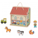 To je ale krásný slunečný den! Děti si užijí spoustu zábavy s farmou se zvířátky, traktůrkem a farmářem. Zábavnou formou se naučí rozpoznávat zvířátka a díky roztomilým ilustracím se dozvědí spoustu užitečných informací o tom, co se na farmě pěstuje, jaké nářadí se používá a čím se zvířátka krmí. Zadní stěna farmy je vyklápěcí a oboustranně pomalovaná. Do vnitřního prostoru si děti uklidí všechny figurky a díky praktickému uchu si mohou svou oblíbenou hračku vzít vždy s sebou. Hračka inspiruje k vyprávění příběhů a zlepšuje komunikační dovednosti. Díky kvalitnímu zpracování a kombinaci zářivých barev s barvou přírodního dřeva bude krásným doplňkem každého dětského pokojíčku nebo herny.