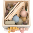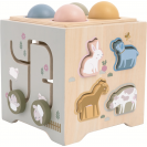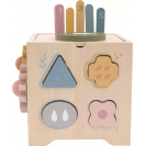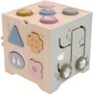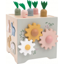 Objevujte svět a učte se zábavnou formou! Dřevěná motorická kostka s motivy farmy nabízí dětem pestrou škálu herních aktivit, které rozvíjejí jemnou motoriku, logické myšlení i koordinaci ruka-oko. Každá strana kostky přináší jinou zábavnou výzvu – od vkládání zvířátek, přes otáčení ozubenými kolečky, až po barevné vkládačky nebo jednoduché počítání. Hračka navíc obsahuje vyměnitelná víka s různými herními možnostmi. Děti mohou například přiřazovat obrázková kolečka ke správným předlohám a tím trénovat zrakové vnímání, třídění a soustředění. Nechybí ani oblíbená zatloukací hra, při které lze zatloukat dřevěné mrkvičky nebo kuličky. Během hry se děti učí rozpoznávat základní tvary, barvy i zvířátka. Veškeré díly lze uložit uvnitř kostky, takže po hraní zůstává vše pohromadě a nic se neztratí. Díky jemným pastelovým barvám a roztomilým ilustracím zvířátek je hračka nejen atraktivní a zábavná, ale je i pěkným doplňkem dětského pokojíčku či herny.