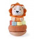 Lvíček zve děti ke hře plné barev, tvarů a objevování! Na dřevěnou tyčku, která tvoří tělo lvíčka, se postupně nasazují kroužky o více velikostech z různých materiálů i textur. Nejdřív látkový kroužek s ocáskem a nakonec plyšová hlavička lvíčka. Dokážete to nasadit správně, aby byl lvíček kompletní? Skládání rozvíjí jemnou motoriku, koordinaci ruka-oko i schopnost rozlišovat tvary, textury a velikosti.