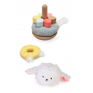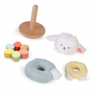 Ovečka zve děti ke hře plné barev, tvarů a objevování! Na dřevěnou tyčku, která tvoří tělo ovečky, se postupně nasazují kroužky o více velikostech z různých materiálů i textur. Nejdřív látkový kroužek s ocáskem a nakonec plyšová hlavička ovečky. Dokážete to nasadit správně, aby byla ovečka kompletní? Skládání rozvíjí jemnou motoriku, koordinaci ruka-oko i schopnost rozlišovat tvary, textury a velikosti.