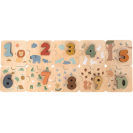 Objevujte svět čísel a přírody s krásným dřevěným puzzle, které spojuje zábavu s učením! Puzzle se skládá z 10 pevných čtvercových dílků z přírodního dřeva, které do sebe zapadají a vytvářejí barevnou číselnou řadu od 1 do 10. Na každém čtverci najdete číslo a odpovídající počet obrázků. S číslem 9 se pojí veverka a 9 žaludů, čtverec s číslem 8 zobrazuje kytičku a 8 motýlků, na čtverci s číslem 7 najdete 7 žabiček a na zbývajících čtvercích další roztomilé obrázky spojené s přírodou. Děti se při skládání učí rozpoznávat čísla, počítat a vnímat vztah mezi číslem a množstvím. Puzzle zároveň hravou formou rozvíjí jemnou motoriku, logické myšlení a soustředění.