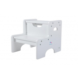 Velký pomocník pro malé objevitele! Praktická stolička se schůdky je ideálním pomocníkem pro děti při každodenních činnostech doma. Díky dvoustupňovému provedení umožňuje bezpečně dosáhnout k umyvadlu, pracovní desce nebo polici a podporuje samostatnost malých pomocníků. Stabilní dřevěná konstrukce zajišťuje pevnost a bezpečné používání s nosností až 70 kg, takže stolička obstojí i při dlouhodobém každodenním provozu. Integrované madlo usnadňuje přenášení a jednoduchý bílý design snadno zapadne do každého interiéru - koupelny, kuchyně i dětského pokoje.