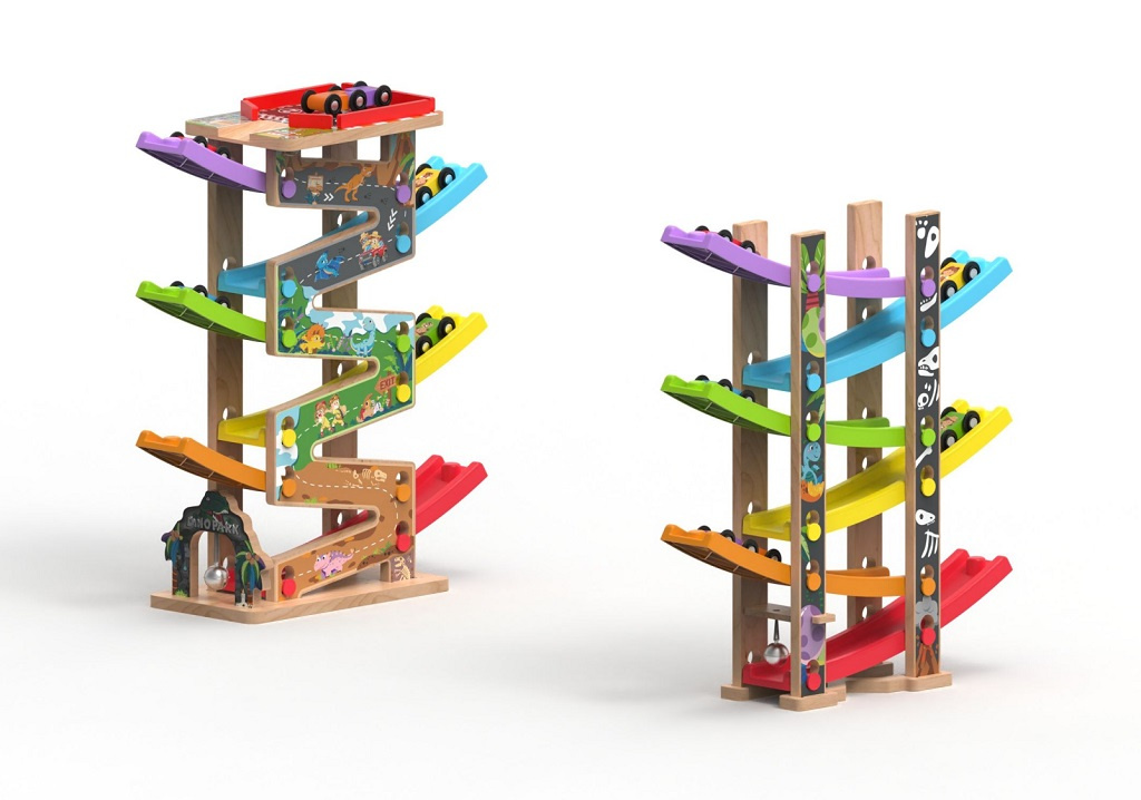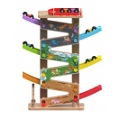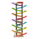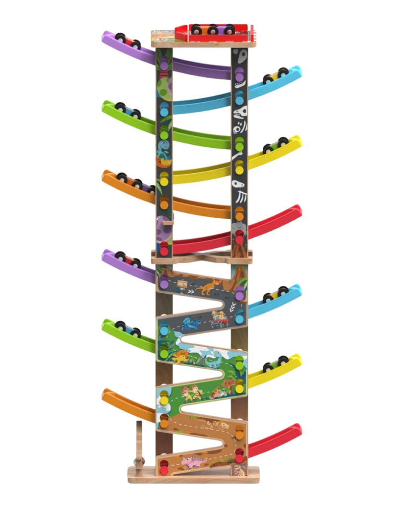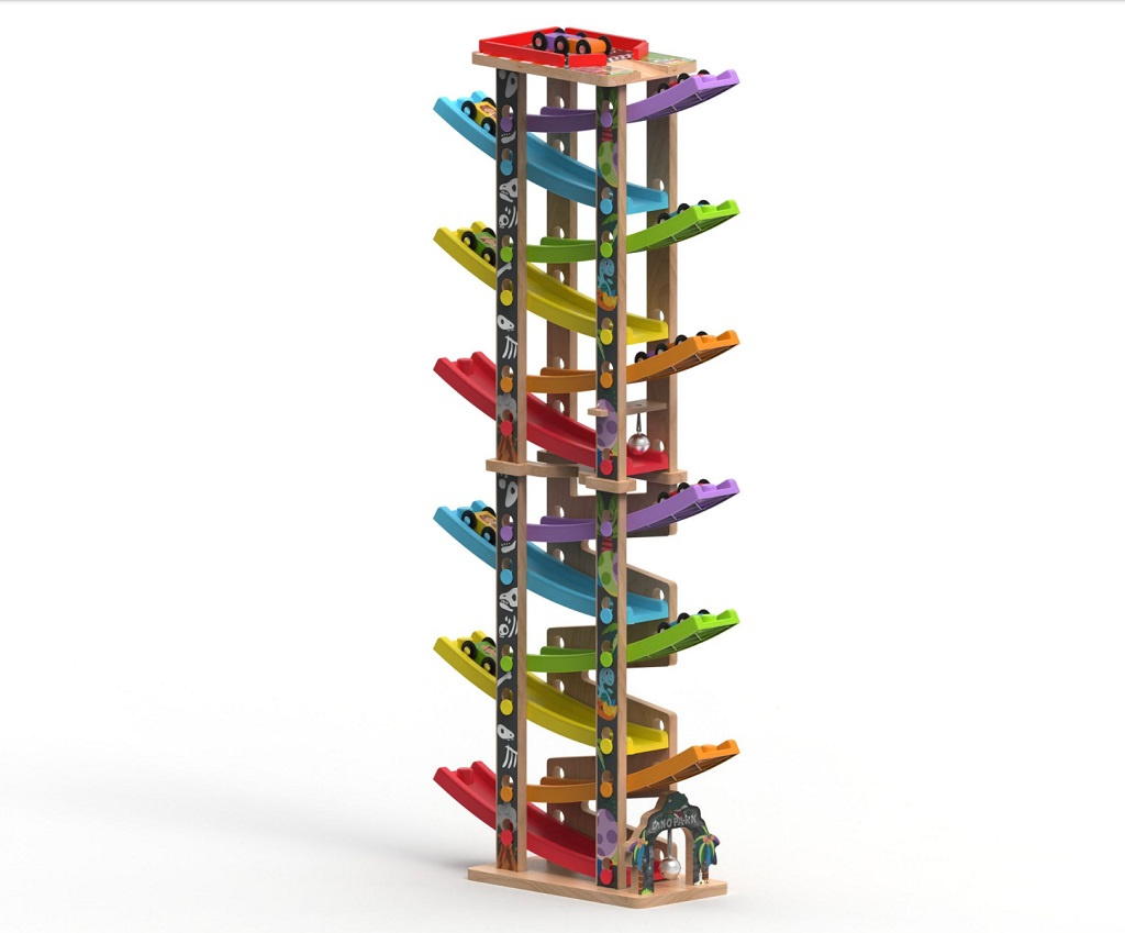 Velká dřevěná závodní dráha s 6 rampami přinese dětem spoustu zábavy a akce! Barevné autíčko vyjede na vrchol dráhy a pak sviští dolů po rampách, zatáčkách a mostech, zatímco děti sledují, jak rychle projede celou trať. Robustní dřevěné provedení je stabilní a bezpečné, ideální pro malé ruce. Sada obsahuje 18 dílů včetně několika autíček, takže si děti mohou hned začít hrát. Dráha podporuje rozvoj jemné motoriky, koordinaci ruka-oko, vnímání prostoru a rozvíjí logické myšlení. Hračka je vhodná pro děti od 18 měsíců, která zabaví na dlouhé hodiny — a to nejen jednoho malého závodníka, ale klidně i celou rodinu.