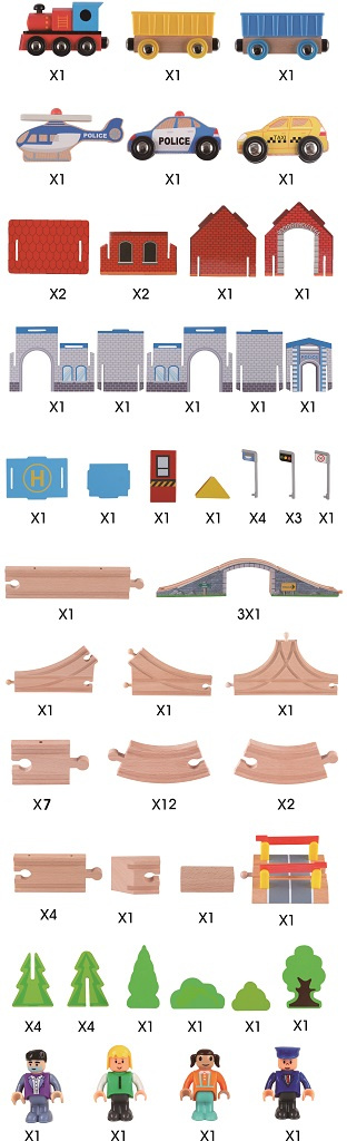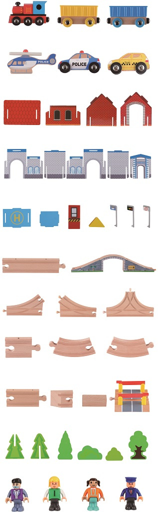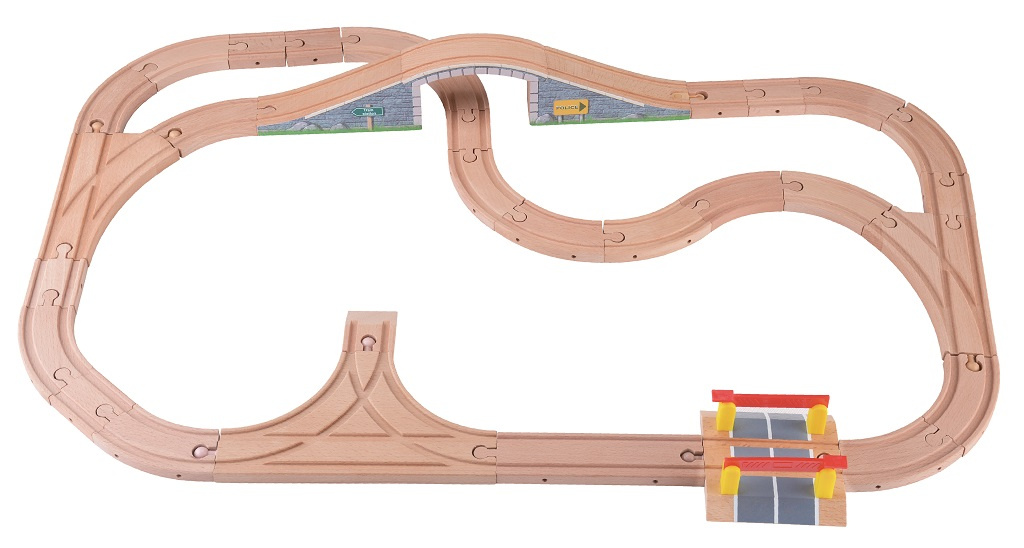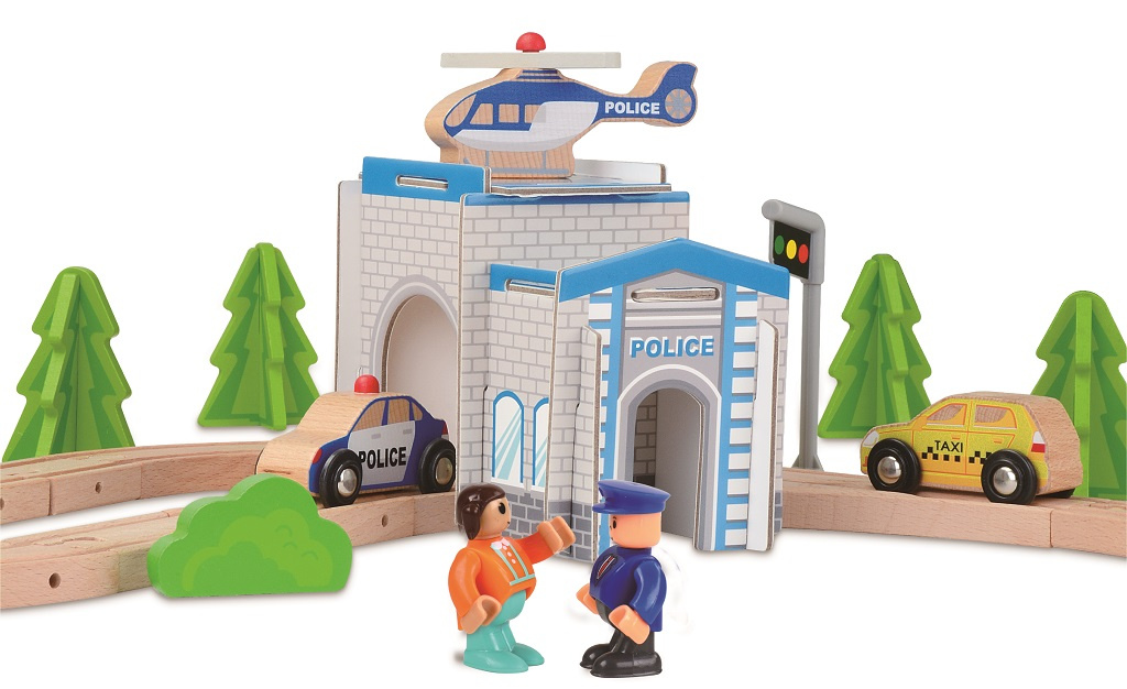 Tato detailně propracovaná dřevěná vláčkodráha potěší každé zvídavé dítě. Podporuje fantazii, rozvíjí jemnou motoriku a nabízí nekonečně mnoho herních scénářů. Stačí naložit náklad, vyrazit přes most a během jízdy potkat policejní stanici s heliportem, taxi službu nebo zvedací závoru. Každý den může být jiný – a každá jízda nový příběh!