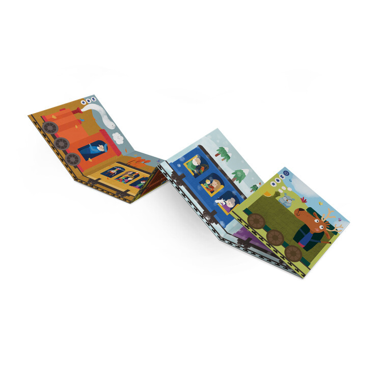 Kniha Vlakem celým rokem je prvním titulem ve formátu rozkládacího harmonikového leporela a je tak vhodná i pro ty nejmenší čtenáře.