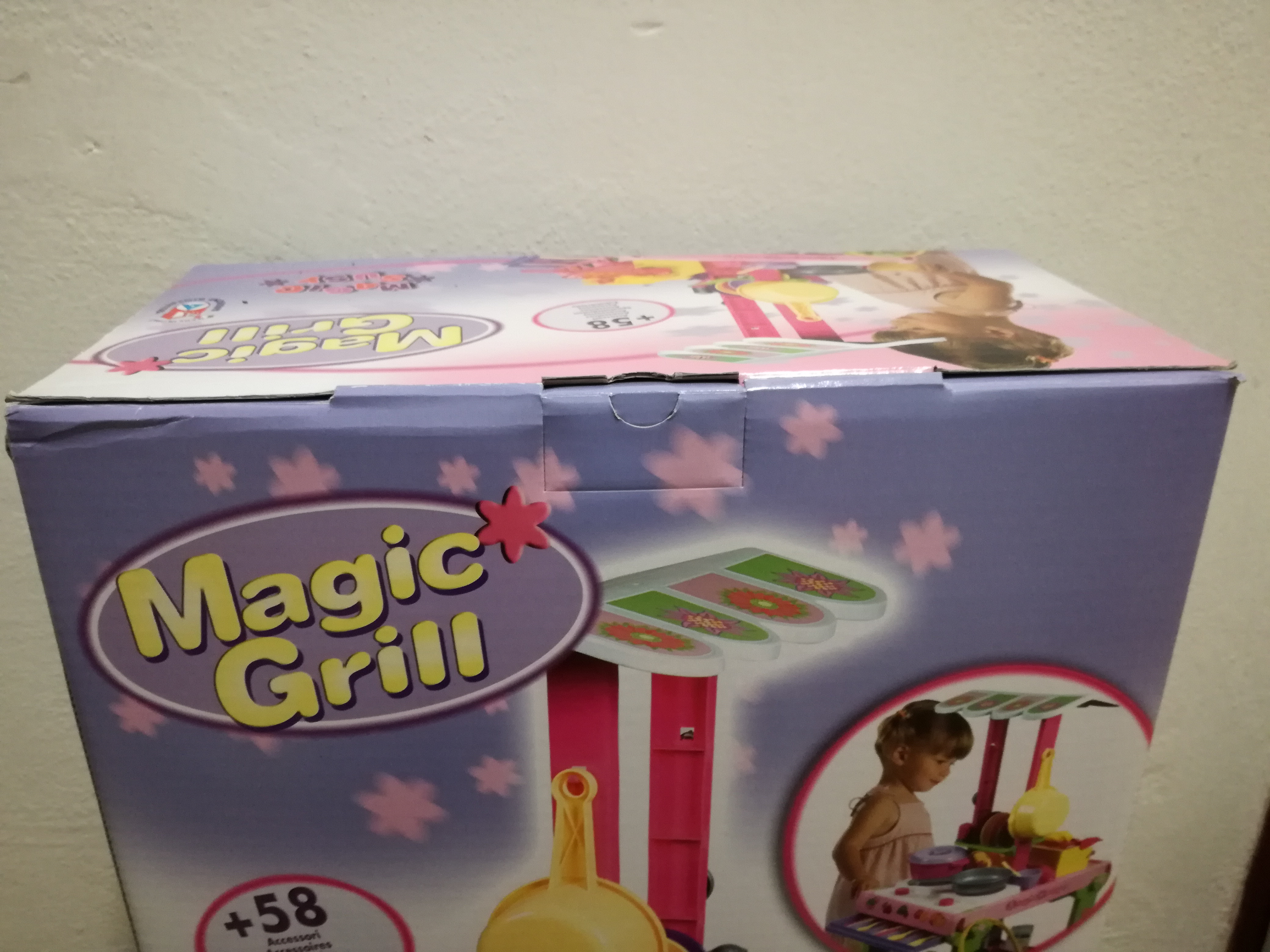 Pojízdný gril obsahuje vše, na co si malý kuchař může vzpomenout. Spousta nádobí (šálky, podšálky, talíře, pánvičky), příbory, potraviny, košík na potraviny a mnoho dalších. Gril má kolečka, a proto je snadno přenositelný. Balení obsahuje 56 ks příslušenství.