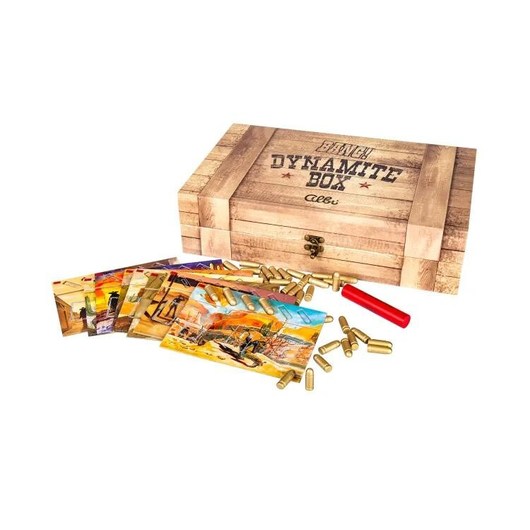 Balení obsahuje: Bang! základní hru + 9 rozšíření: Dodge city, Zlatá horečka, Ozbrojení a nebezpeční, Velká vlaková loupež, Divoký západ, High noon, Fistful, Údolí stínů, Nejhledanější; hráčské desky, dřevěné náboje a dynamit.