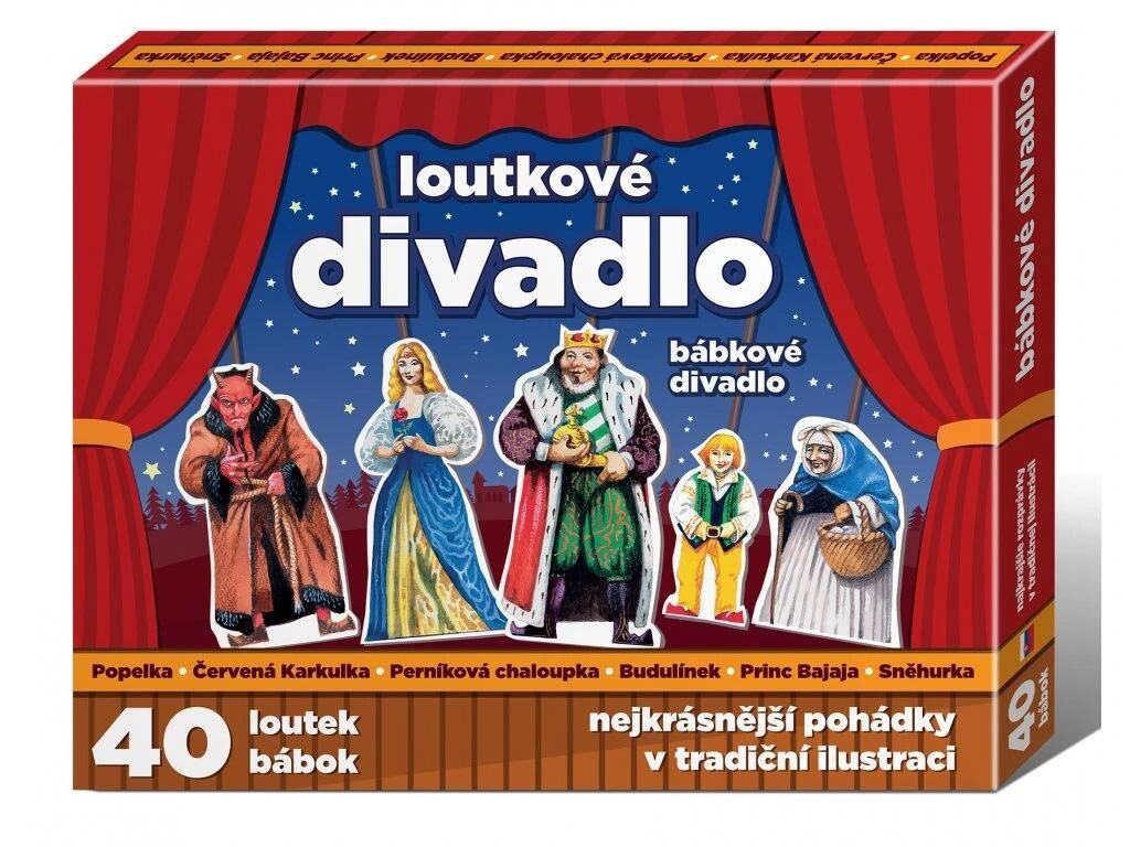Oblíbené papírové loutkové divadlo umožňuje přehrávat známé pohádky s barevnými loutkami vedenými na špejlích. Divadlo lehce sestavíte z připravených kartonových dílů. Loutky jednoduše vyloupnete z předseknutého kartonu, pak do nich zasunete vodící špejle.