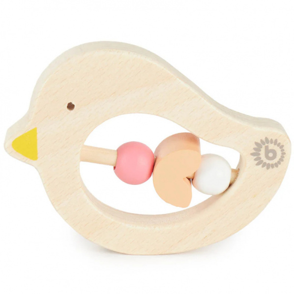 Popis produktu Bieco - Dřevěné kousátko s růžovými korálky - ptáček
