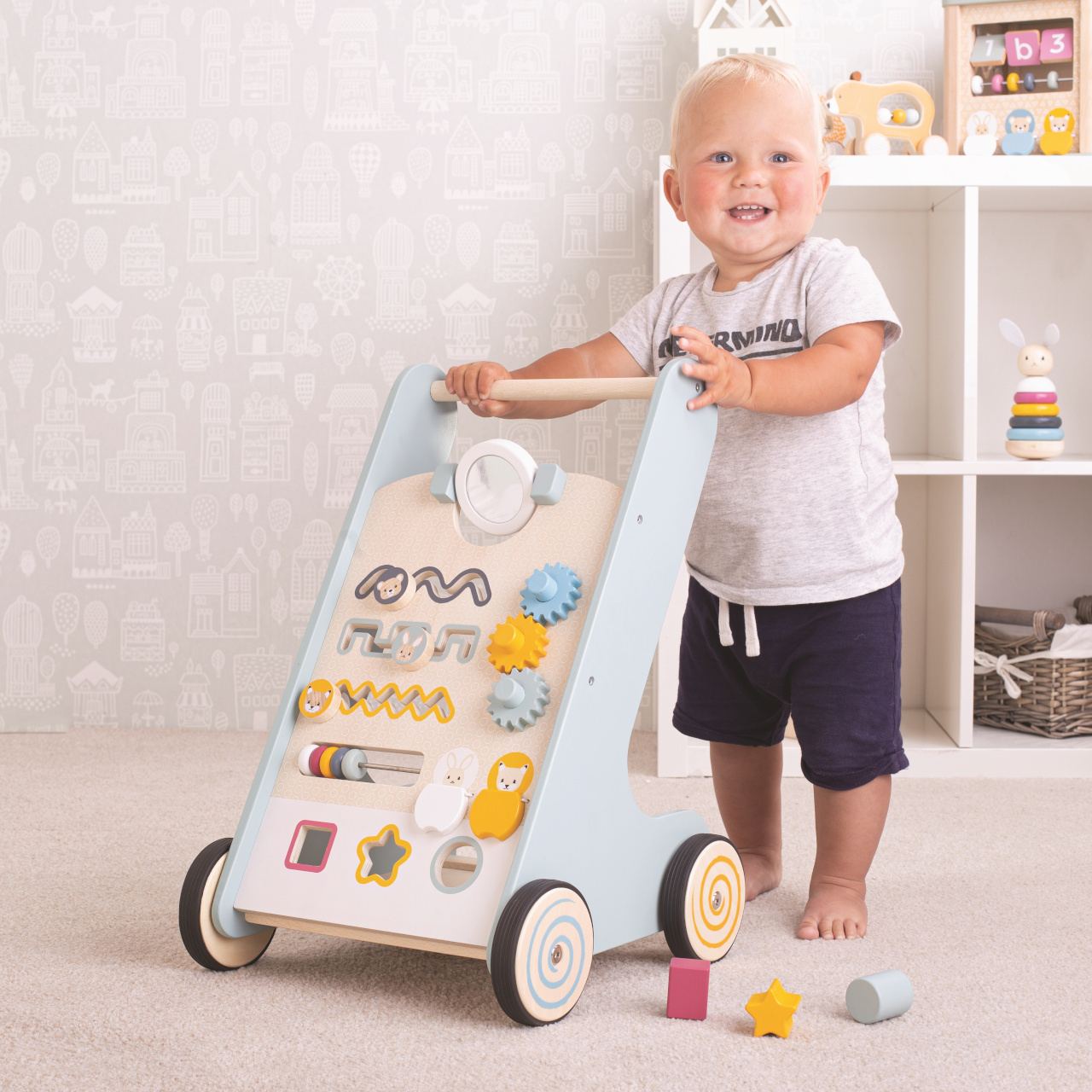 Podpořte děti v pohybu, zručnosti, potrénujte jejich umění vkládat, třídit... Toto aktivní chodítko toho nabízí opravdu hodně. Je vyrobeno z FSC certifikovaného dřeva, inspirováno zvířátky z lesa. Snoubí se v něm přírodní i barevné dřevo. Má úložný prostor, do kterého si děti mohou uložit ostatní hračky. Na předním panelu najdou aktivity jako je vkládání, počítání na korálkovém počítadle, ozubená kolečka, zrcátko...