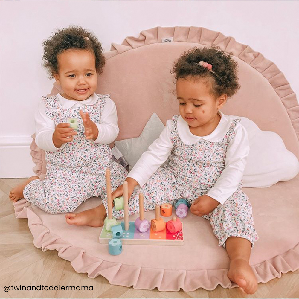 Vzdělávací dřevěné nasazování barevných květinek pomůže dítěti naučit se hravou formou rozlišovat barvy, počítat a procvičovat jemnou motoriku. Barevné květinky se nazazují na příslušné kolíky.
