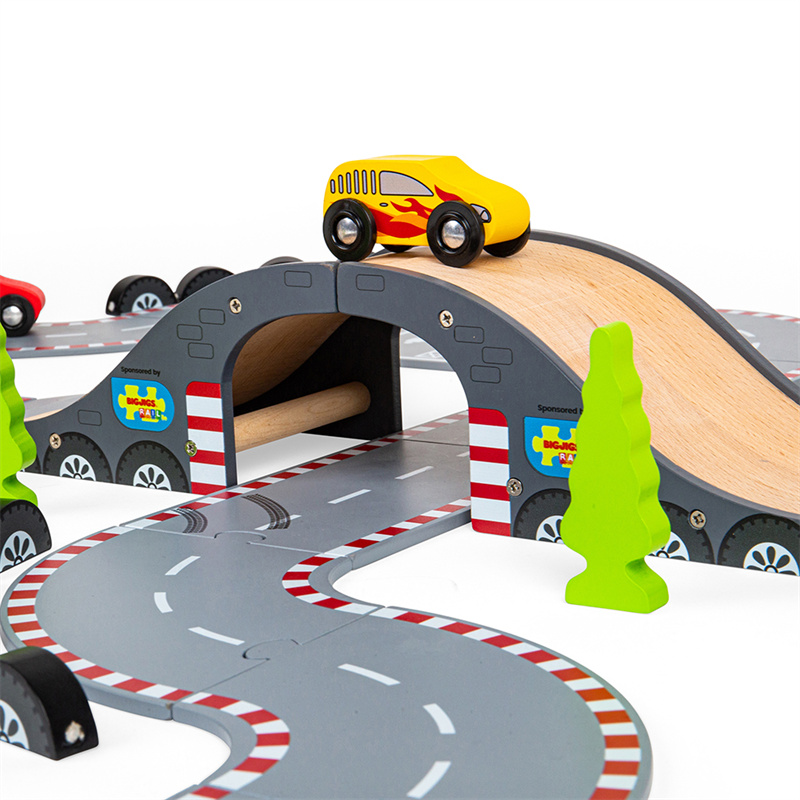 Připravit! Pozor! Start! Tato fantastická dřevěná autodráha Závodní den je ideální dárek pro každého malého závodníka, nebo závodnici. Obsahuje řadu dřevěných silníčních dílů, 3 závodní auta, start/cíl a další příslušenství, což umožňuje dostatek prostoru pro zábavnou a kreativní hru. Lze ji použít s dalšími sadami Bigjigs Rail silnicemi a rozšířit tak rozmanitost herních aktivit. Lze kombinovat i se všemi ostatními dřevěnými silničními sadami na trhu. Rozvíjí koordinaci pohybů, jemnou motoriku, zručnost a představivost. Vyrobeno z vysoce kvalitních, zodpovědně získaných materiálů. Splňuje aktuální evropské bezpečnostní normy.