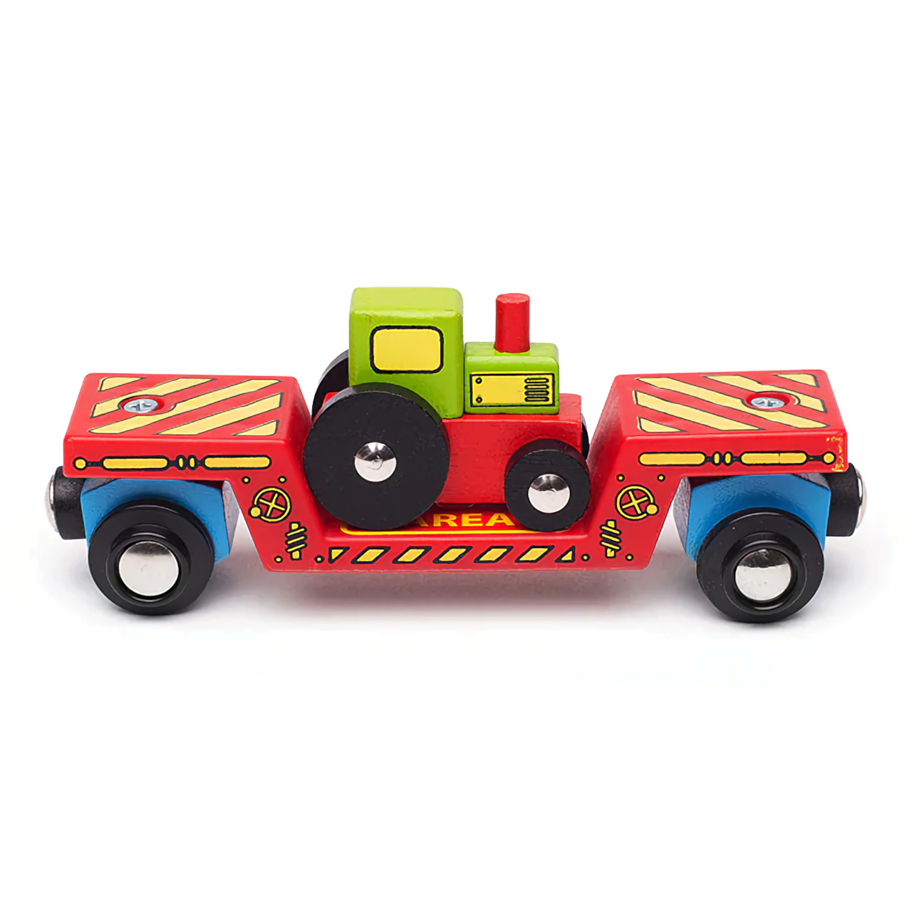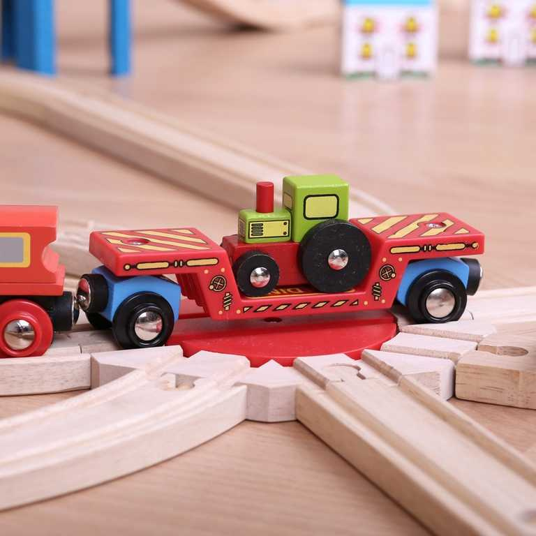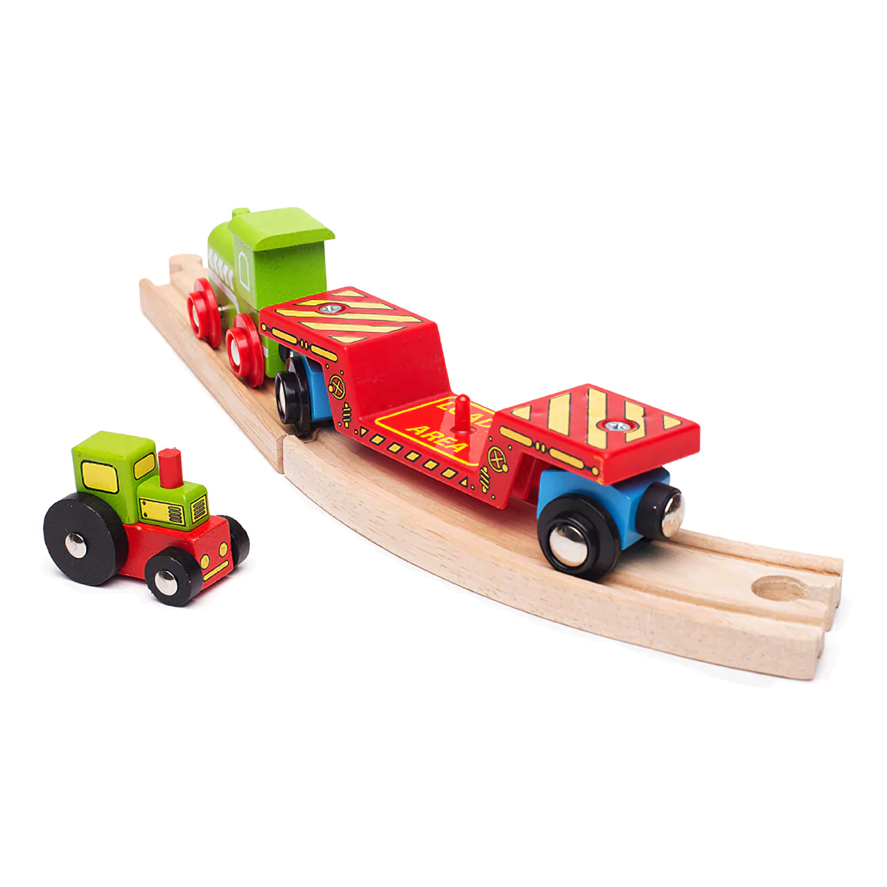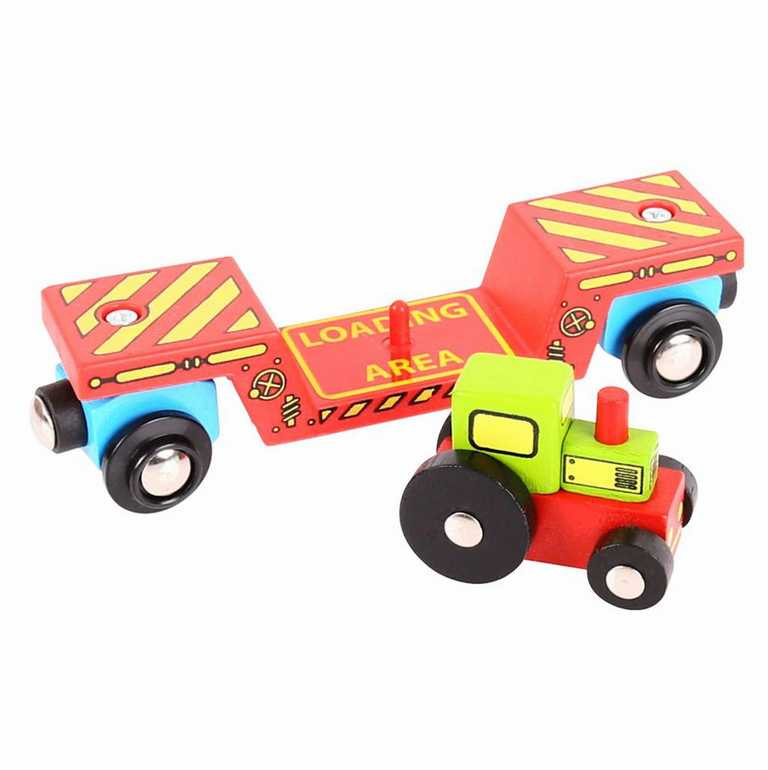 Tato krásná hračka má dvojí využití! Děti si mohou hrát s traktorem a zároveň najíždět a převážet na těžkotonážním vagónku dřevěné vláčkodráhy. Vagónek má také magnetické spojky, které zajišťují snadné propojení s dalšími vagónky nebo lokomotivou.