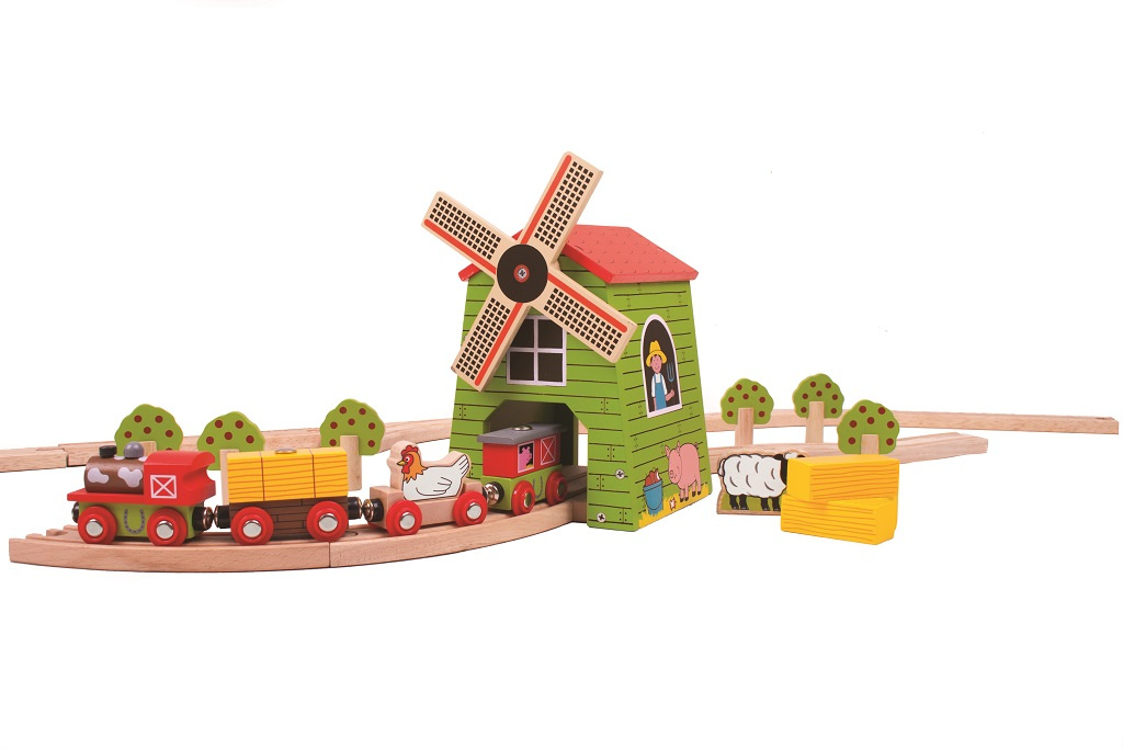 Malé železniční nadšence jistě potěší průjezd svými vlaky skrz větrný mlýn v průběhu jejich železničního dobrodružství. Lopatky mlýnu jsou pohyblivé.