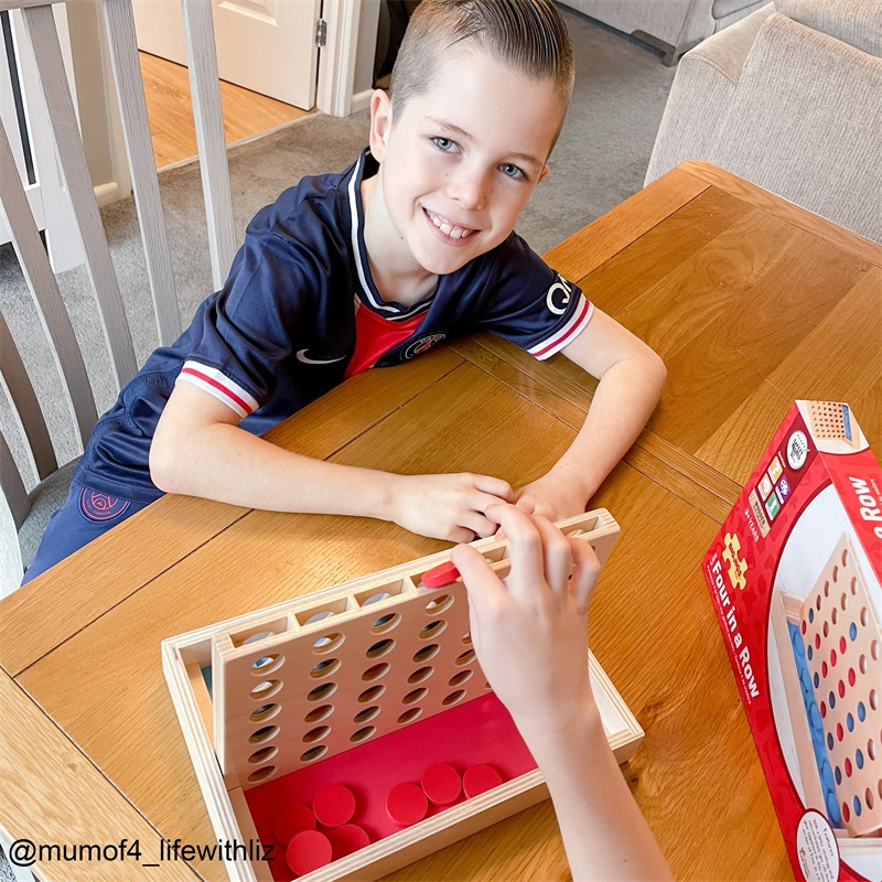 Čtyři v řadě pomáhají dětem rozvíjet schopnosti logického myšlení a jemnou motoriku , když umísťují své žetony do různých slotů - vertikálně, horizontálně nebo diagonálně. Jednoduchá, ale účinná soutěžní desková hra .