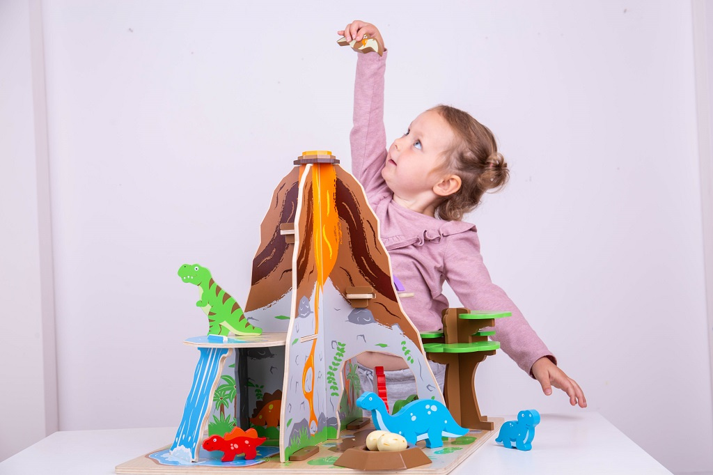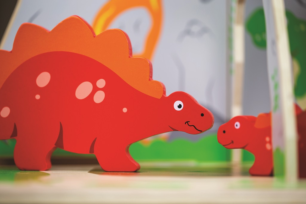 Vraťte se zpět do časů, kdy dinosauři vládli Zemi. Hrací sada Ostrov dinosaurů obsahuje 8 dinosaurů, hnízdo a 2 vejce, vodopád a volně stojící strom. Stromem se dá pohybovat. Z dinosaurů na děti čeká mimo jiné velký Brontosaurus s mládětem a také 2 Pterodaktylové. Schovejte se za vodopádem, vylezte na sopku nebo balancujte na skalní římse, ale pozor na lávu! Tato sada děti naučí něco o dinosaurech a čase, kdy žili. Jednoduše složte dřevěné dílky do sebe a prehistorická krajina je připravena ke hraní. Ostrov dinosaurů pomáhá a rozviíjí zručnost, představivost, sociální dovednosti a koordinaci dětí. Obsahuje 13 hracích dílků. Vyrobeno z kvalitních materiálů z odpovědných zdrojů.