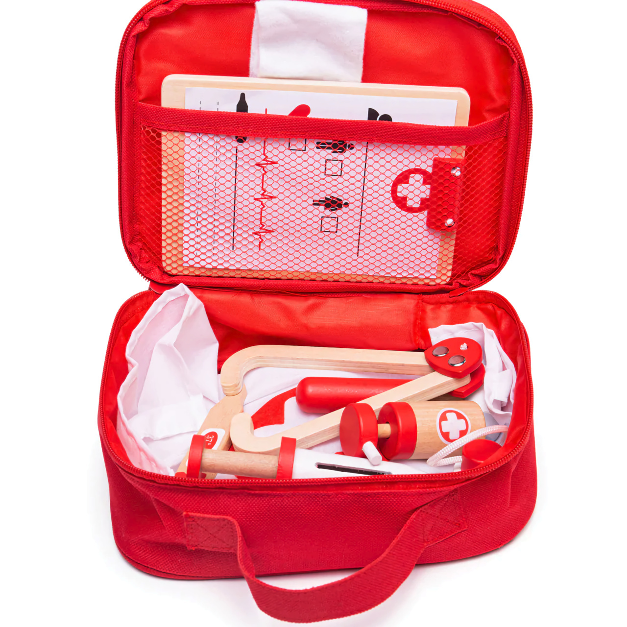 Praktická taška na přenášení dělá z této doktorské sady skvělého společníka na cesty. Skládá se z 10 hracích částí. Vyrobeno z vysoce kvalitních materiálů z odpovědných zdrojů. Vyhovuje současným evropským bezpečnostním normám.