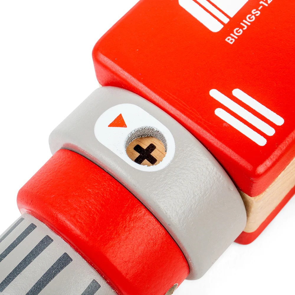 Dětská dřevěná vrtačka je zábavnou hračkou určenou pro děti, které zajímá svět řemesel. Má atraktivní design, který přitahuje dětskou pozornost. Začínající kutilové se mohou pustit do svého projektu s touto vrtačkou, když předstírají, že sestavují police nebo nábytek. Má vše, co byste očekávali od skutečné vrtačky, kromě elektřiny a ostrých částí. Tři dřevěné vrtáky a šrouby jsou magnetické a snadno se připevňují k hlavě vrtačky. Vrtačka se otáčí ručně. Má klikací tlačítko pro zapnutí/vypnutí. Vyrobeno z vysoce kvalitních, zodpovědně získaných materiálů.