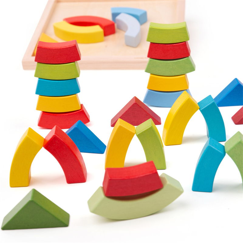 Tyto dřevěné tvary byly navrženy tak, aby zaujaly a nabídly dětem spoustu kreativních možností při hraní. Ideální pro hru s otevřeným koncem , neexistuje žádná kniha pravidel, jak s nimi hrát. Co uděláš? Most? Šikmou věž? Možnosti hraní jsou nekonečné! Tyto tvary pomáhají rozvíjet smyslové dovednosti. Vyrobeno z vysoce kvalitních a zodpovědně pocházejících materiálů. Vyhovuje současným evropským bezpečnostním normám.