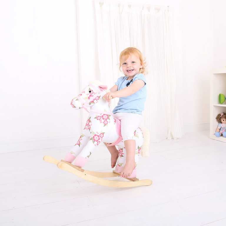 Vyražte na projížďku! Tento nádherný, pečlivě vyrobený dřevěný houpací kůň má nádherný květinový design s měkkým růžovým sedlem a uzdou. Pevná a snadno uchopitelná madla usnadňují držení. Vyrobeno z vysoce kvalitních materiálů. Všechny Bigjigs Toys hračky odpovídají současným evropským bezpečnostním normám.