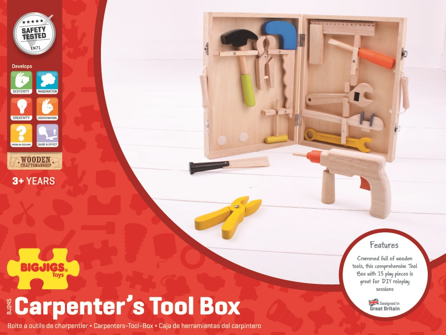 Tento kufřík plný nářadí potěší všechny mladé chlapce, kteří chtějí rozvíjet své řemeslné dovednosti. Hrací předměty zahrnují kladivo, kleště, vrtačku a klíče na matice. Nářadí má v kufříku své místo pro snadné uložení. Přispívá k rozvoji zručnosti a koordinaci.