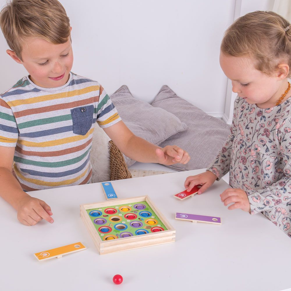 Hra zaměřená na dovednost a přesnost! Hráči se musí střídat tak, aby umístili barevnou kouli do odpovídající dírky na desce. Hráč, který zvládne umístit všechny čtyři barevné koule do děr, vyhraje! Hra může být hrána až 4 hráči se čtyřmi různými barvami na desce - červená, modrá, žlutá a fialová. Skvělý způsob, jak rozvíjet dovednost soustředění a pozorování, a zlepšuje schopnost počítat. Podporuje interaktivní hrací sekce a rozvíjí slovní zásobu. Vyrobeno z vysoce kvalitních, zodpovědně dodávaných materiálů. Odpovídá současným evropským bezpečnostním normám.