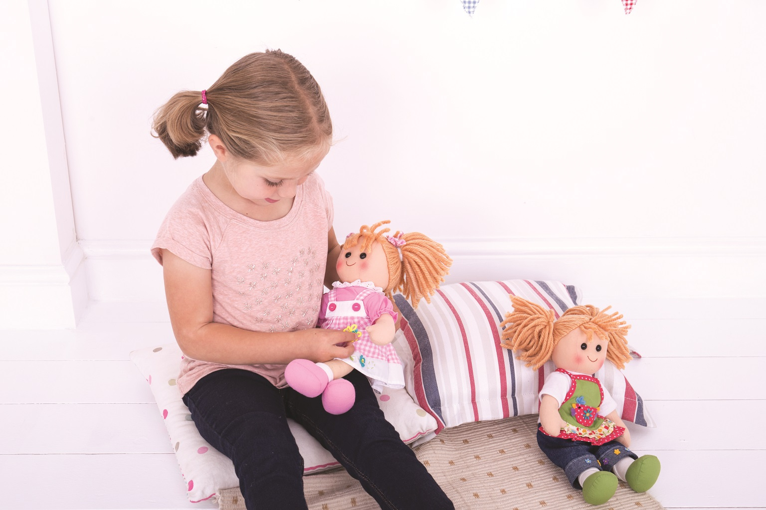 Modré pruhované šaty s čelenkou. Šaty lze obléci na panenky velikosti 28cm. Součástí balení je také věšáček.
