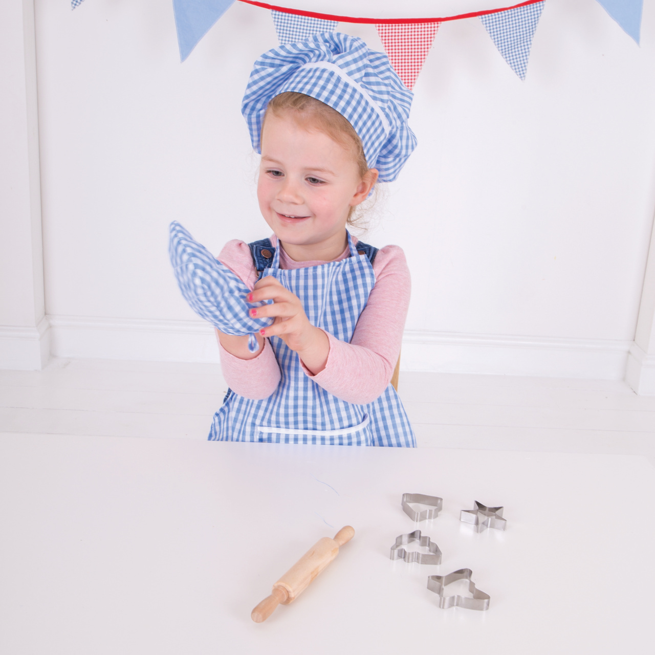 Mladí kuchaři budou milovat tuto světlou a příjemně modrou bavlněnou sadu k pečení nebo vaření, která obsahuje zástěru, chňapku, kuchařskou čepici, váleček a vykrajovátka. Ideální pro použití v asistovaném vaření nebo pečení, nebo pro použití v našem dřevěném kuchyňském sortimentu, jako součást hracích rolí, které si vaše dítě jistě rádo ztvární.