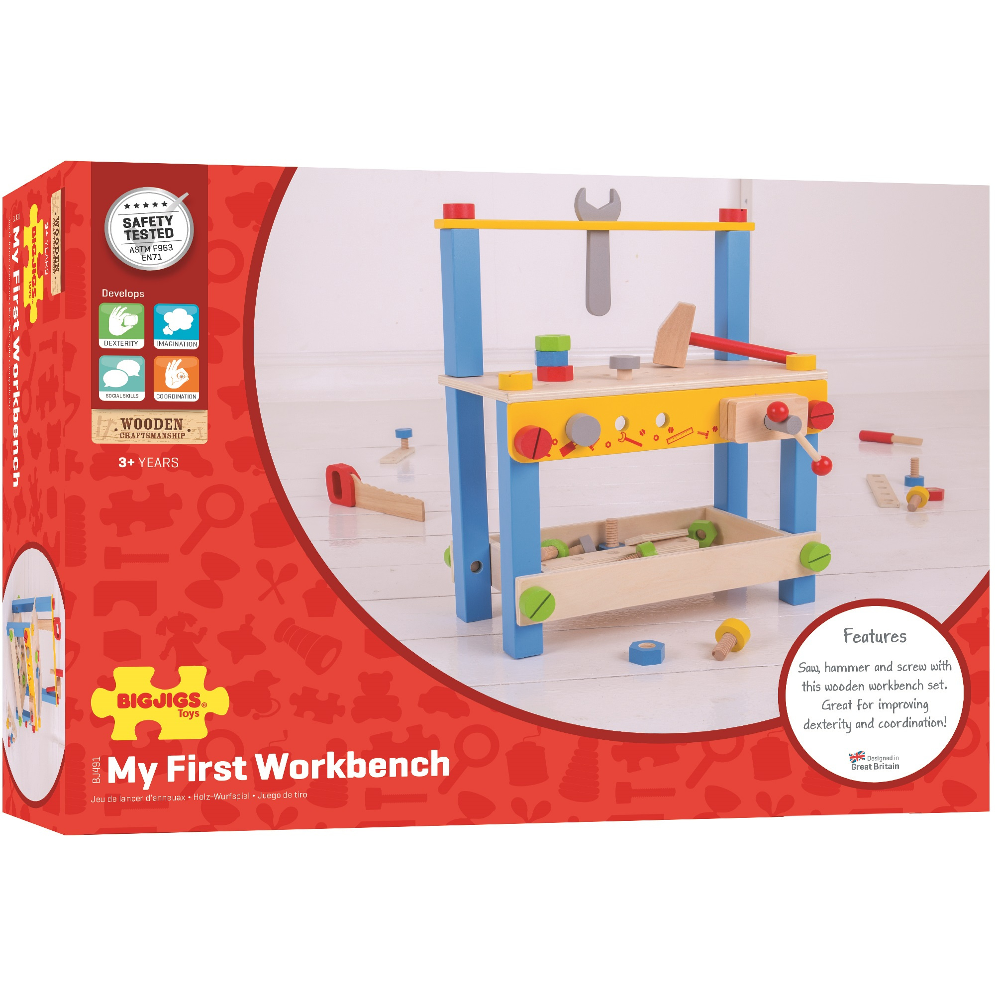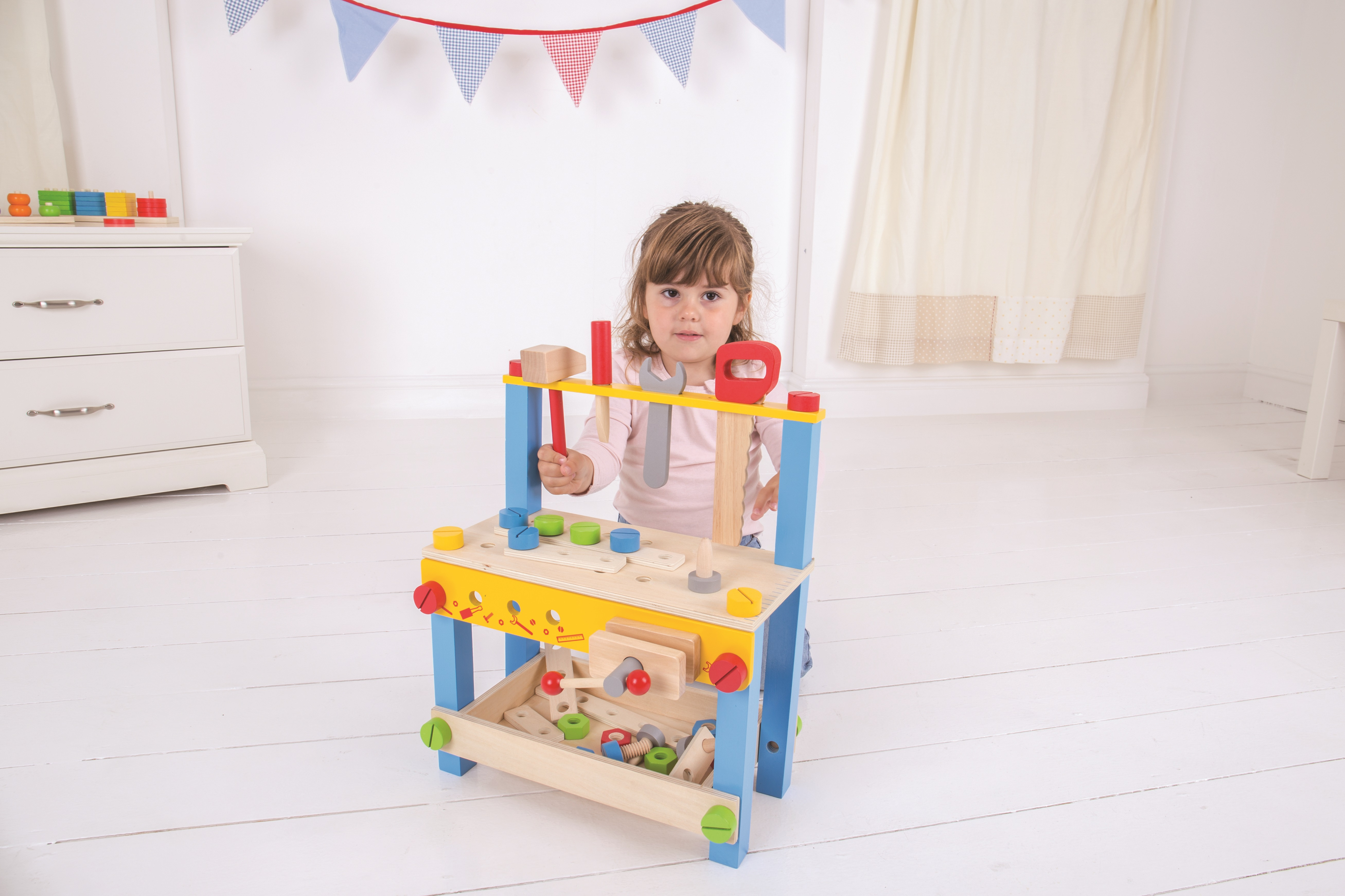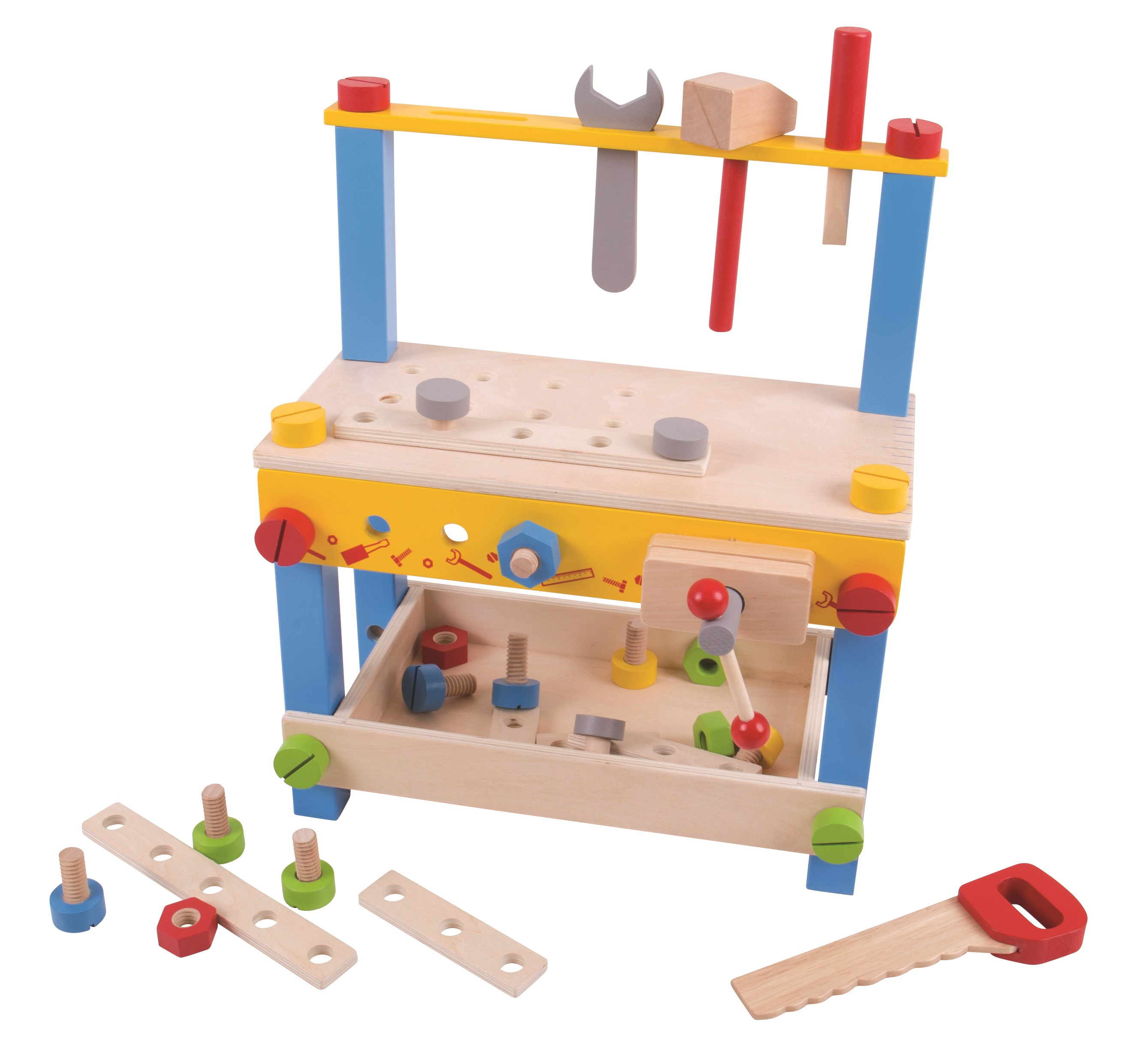 Tento ponk je přesně to, co každý mladý řemeslník potřebuje. Stůl na nářadí je robustní a obsahuje spoustu dřevěných prvků a nástrojů, které inspirují děti k hodinám nápadité hry. Ponk obsahuje svorku, klíč, matice a šrouby, šroubovák a další. Mladí stavitelé se budou moci naučit základní pojmy nářadí i to, jak fungují. Podporuje koordinaci ruka - oko, motorické dovednosti a rozvíjí kreativitu. Vyžaduje montáž dospělých. Vyrobeno z vysoce kvalitních, zodpovědně získaných materiálů. Splňuje aktuální evropské bezpečnostní normy. Skládá se z 26 hracích prvků.