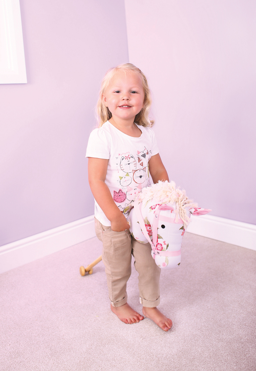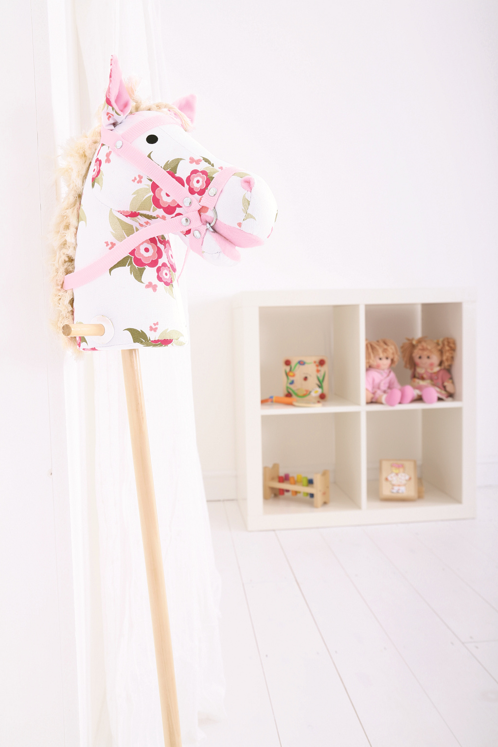 Cváláme, koníčku! Osedlejte si rozkošného koníčka s květinovým vzorem na hodiny aktivní zábavy. Koníci na tyči jsou skvělým způsobem, jak podpořit pohybovou aktivitu a cvičení, když malé nožičky cválají po herně nebo na zahradě. Tento rozkošný dřevěný koníček se vyznačuje měkkou plyšovou hlavou, nadýchanou hřívou, praktickými otěžemi, snadno uchopitelnými rukojeťmi, kolečky na konci tyče a pevnou konstrukcí. Lesklá dřevěná kolečka nezanechávají stopy na podlaze a kloužou po hladkém rovném povrchu.