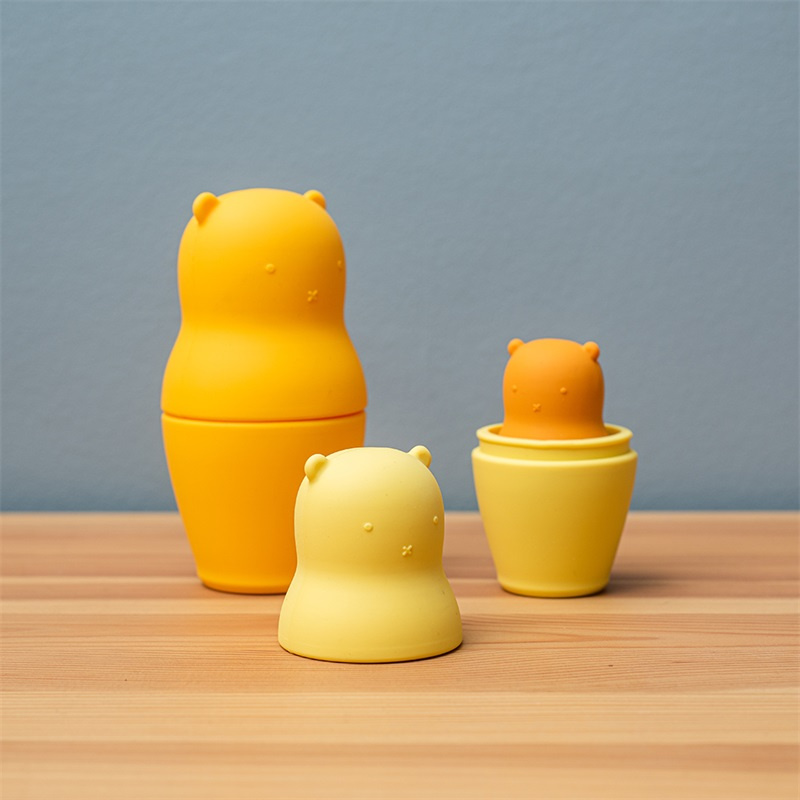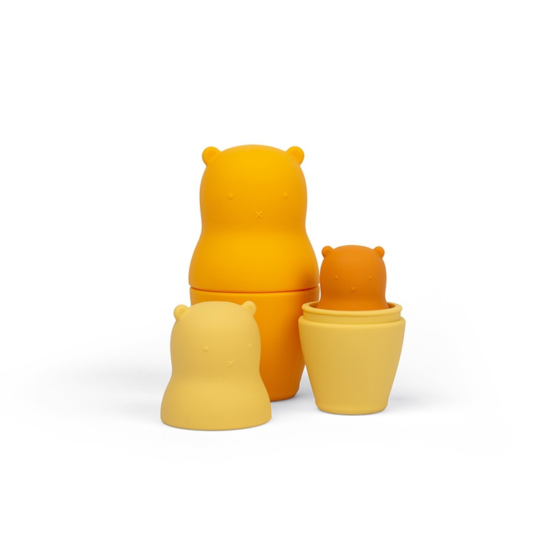 Silikonoví medvídci matrjoška jsou super měkká a ohebná kousátka. Jsou zábavnou vývojovou hračkou a zároveň krásnou dekorací do dětského pokojíčku. Každý medvídek má jinou barvu. Vyrobeno ze 100% potravinářského silikonu, který je odolný, netoxický, snadno se čistí, odolává bekteriím i skvrnám. Čistěte teplou vodou a jemným mýdlem. Udržitelná ekologická hračka.