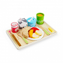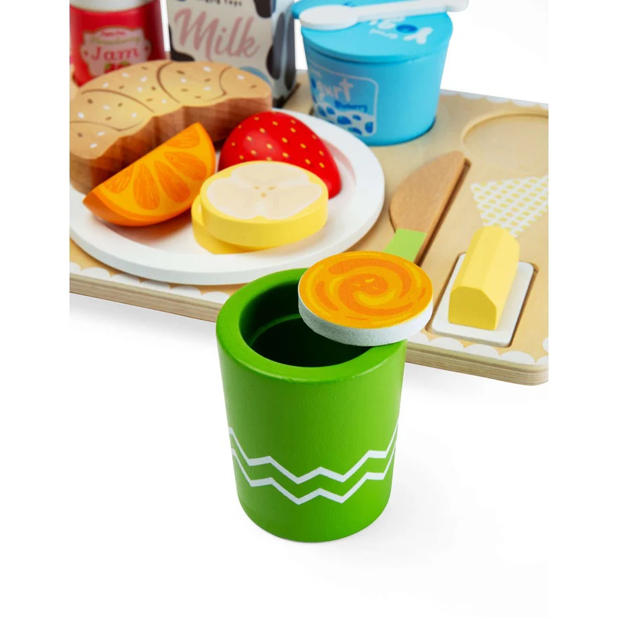 Tato dřevěná sada přináší dětem zábavnou hru na servírování a péči o ostatní. Díky bohatému výběru snídaňových dobrot mohou děti připravit a naservírovat kompletní snídani rodičům, sourozencům nebo kamarádům a ponořit se do světa každodenních situací.