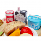 Sada obsahuje pestrou kombinaci jídla, nápojů i doplňků, které jsou přehledně uspořádány na dřevěném podnosu. Děti tak mohou trénovat skládání, servírování i organizaci jednotlivých prvků, což podporuje jemnou motoriku i koordinaci ruky a oka.