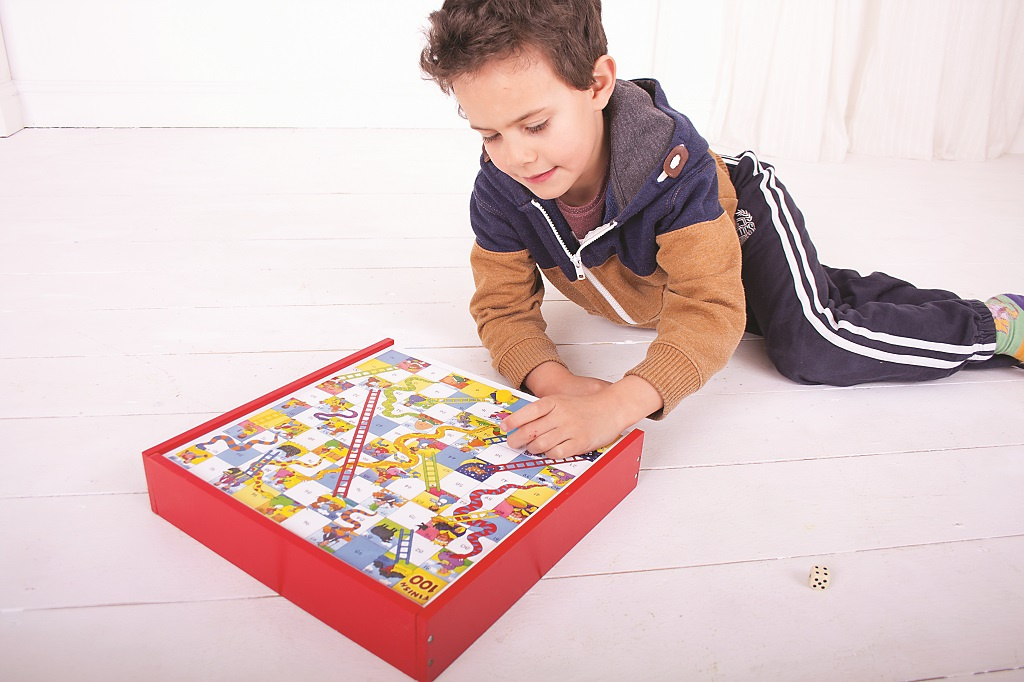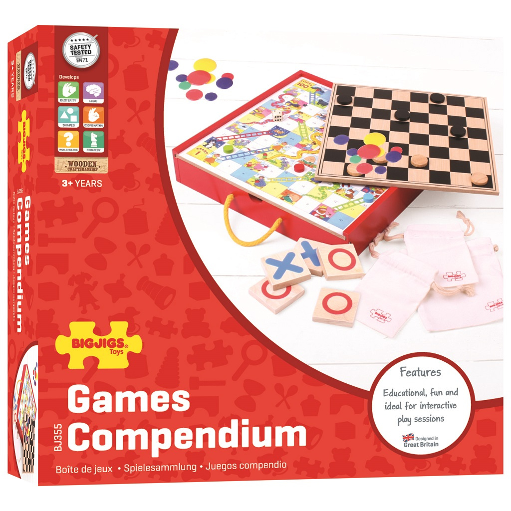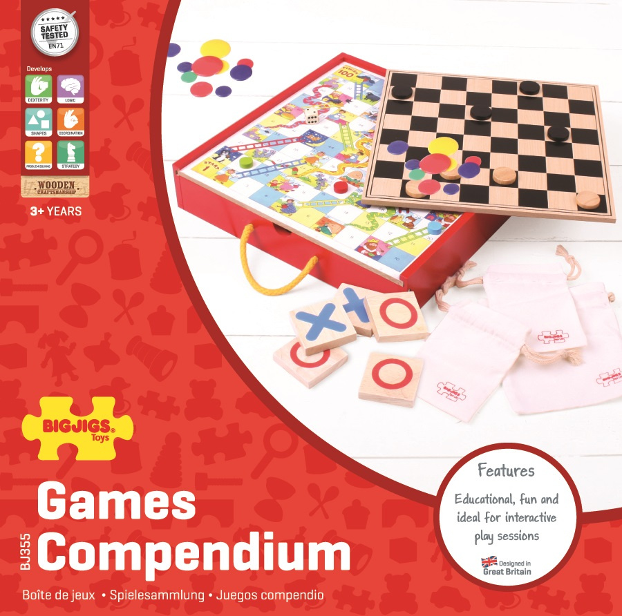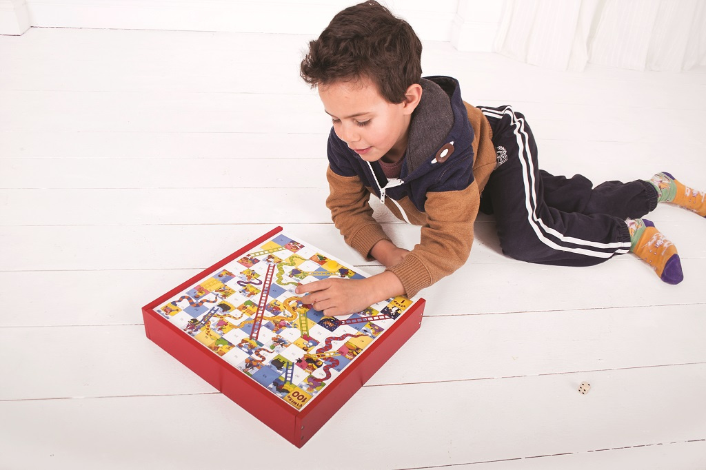 Soubor her v dřevěném boxu obsahuje hrací prvky a instrukce pro nejméně čtyři klasické stolní hry jako jsou například hadi a žebříky, piškvorky nebo dáma. Dřevěná krabička má posuvné víko s oboustrannou deskou a držadlem pro nošení, aby se z ní stala ideální cestovní hračka. Vzdělávací i zábavné pro interaktivní hry. Vyrobeno z vysoce kvalitních, odpovědně získaných materiálů. Odpovídá současným evropským bezpečnostním normám.