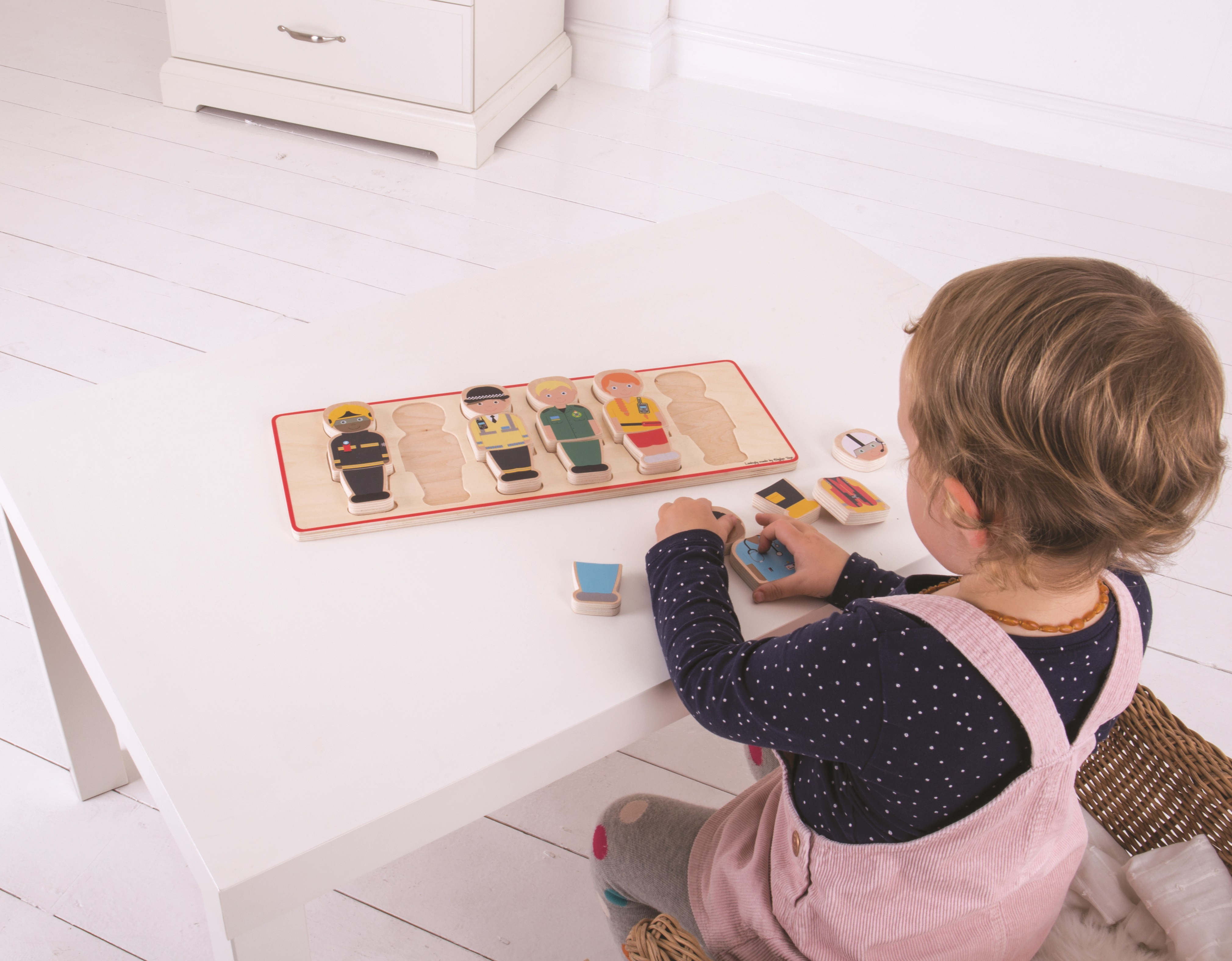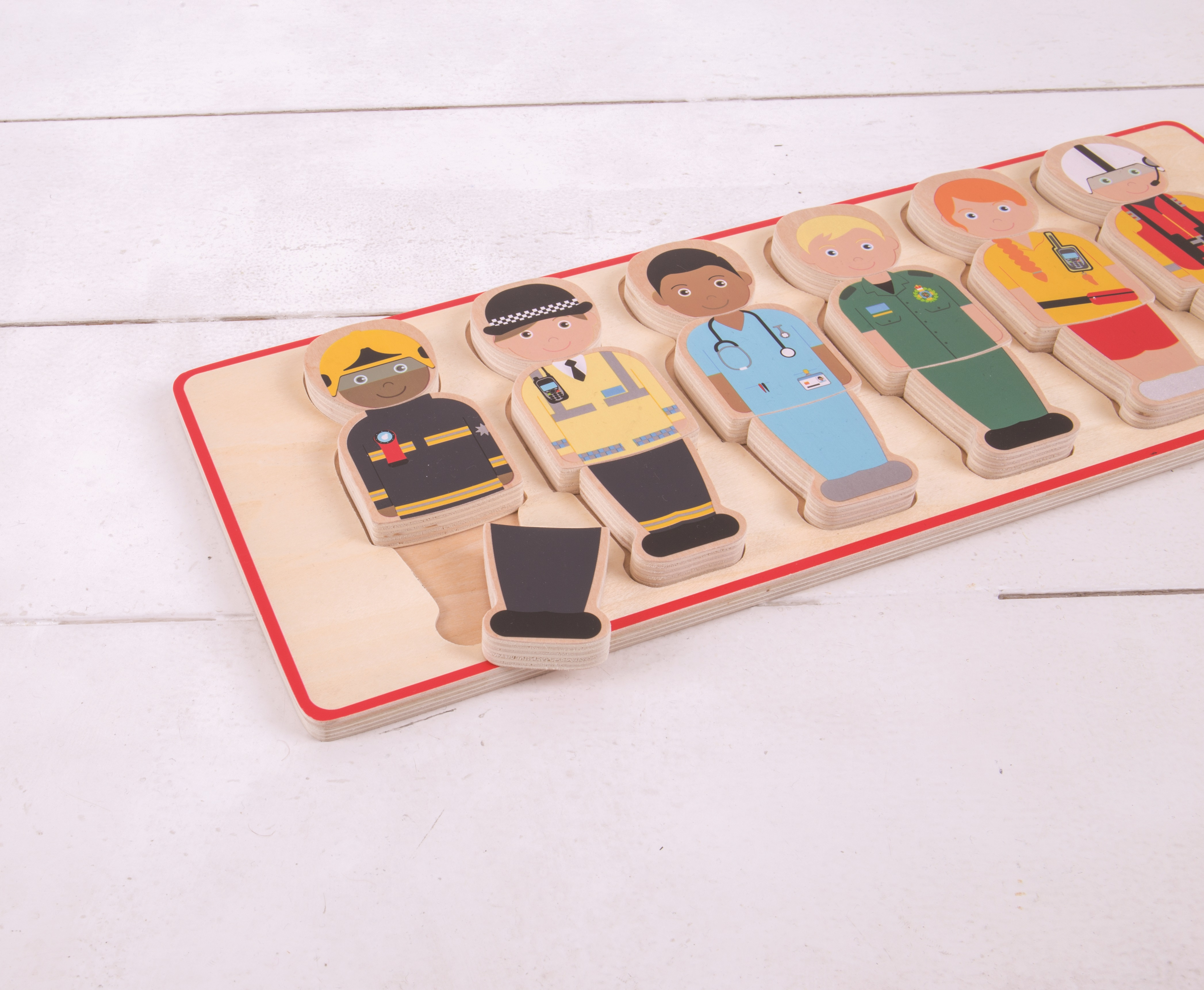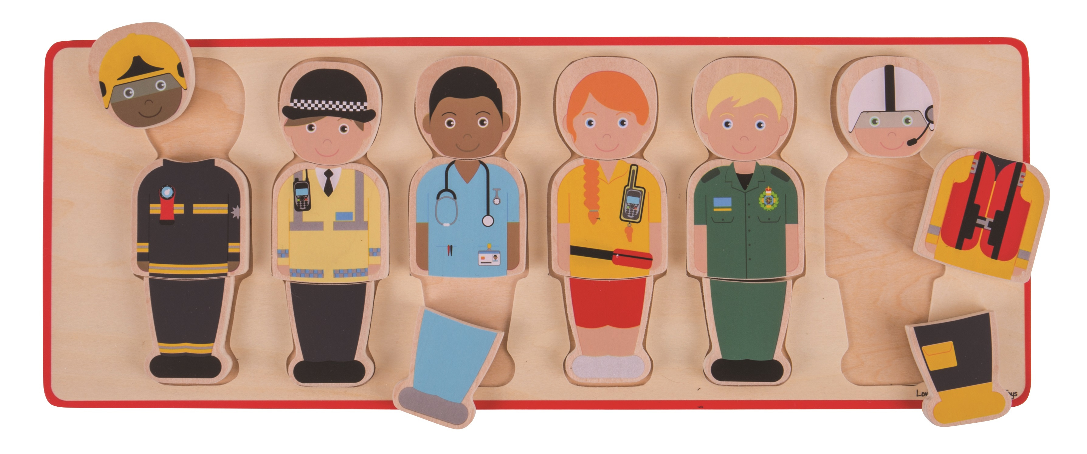 Tito záchranáři jsou Vám připraveni pomoci! Tato robustní dřevěná skládačka obsahuje 6 záchranářů včetně požárníka, policejního důstojníka, doktora, záchranné služby a další! Každá postava se skládá ze tří dřevěných kusů, které umožňují malým dětem kombinovat oblečení pro každého pracovníka. Pomáhá dětem pochopit roli lidí, kteří jim pomáhají v životě. Skvělý způsob, jak rozvíjet slovní zásobu, sladit dovednosti a soustředit se. Podporuje rozvoj jazyka, protože děti hovoří o každém záchranáři a roli, kterou hrají při pomoci lidem. Kompaktní rozměry zajišťují, že tato hádanka je užitečným kamarádem jak doma, tak i na cesty. Vyrobeno z vysoce kvalitních, zodpovědně dodávaných materiálů. Odpovídá současným evropským bezpečnostním normám. Obsahuje 18 dílků.