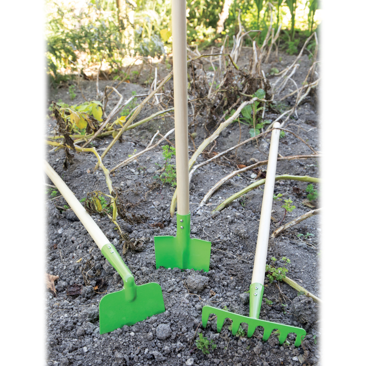 Malí zahradníci si zamilují robustní zahradní lopatku s dlouhou rukojetí. Ideální při práci na zahradě s mámou a tátou. Zahradní doplňky dostupné v zahradnickém sortimentu Bigjigs Toys zahrnují zahradnický pás, tašku s nářadím, zahradnické rukavice, nářadí s dlouhou rukojetí, konve, kbelíky, ruční nářadí a zástěru.