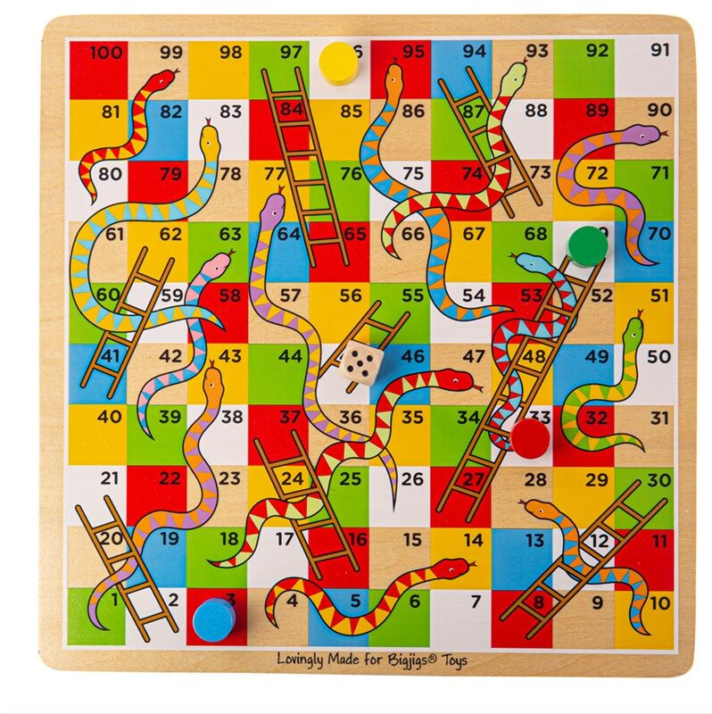 Hadi a žebříky je tradiční desková hra až pro 4 hráče, která patří mezi nejoblíbenější hry na světě. Tato sada obsahuje vše, co potřebujete, abyste si užili dlouhotrvající zábavu, včetně barevné hrací desky, kostek a 4 figurek, každé v jiné barvě. Tato tradiční hra je skvělým způsobem, jak naučit děti trpělivosti, soustředění, komunikaci s ostatními hráči, jak vyhrávat ale i prohrávat. Pro mladší děti je pohybování figurkami po hrací desce výborným cvičením koordinace ruka-oko, zručnosti a rozpoznávání barev a tvarů. A díky ní se také děti naučí a zdokonalí v základních matematických dovednostech jako je sčítání a odčítání.