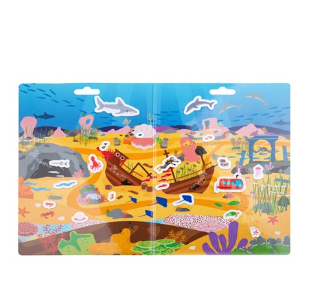 Připravte se na hodiny vyprávění o podmořském světě s touto skvělou knížkou s nálepkami. Každá nálepka je omyvatelná a znovu použitelná, což umožňuje jejich použití znovu a znovu. To znamená, že děti mohou při každém hraní vytvořit jinou scénu. Mohou mluvit o tom, co se děje v každé scéně, kterou vytvoří. Tím je dítě povzbuzováno k tomu, aby si rozšířovalo slovní zásobu a podpořilo rozvoj řeči a koncentrace.