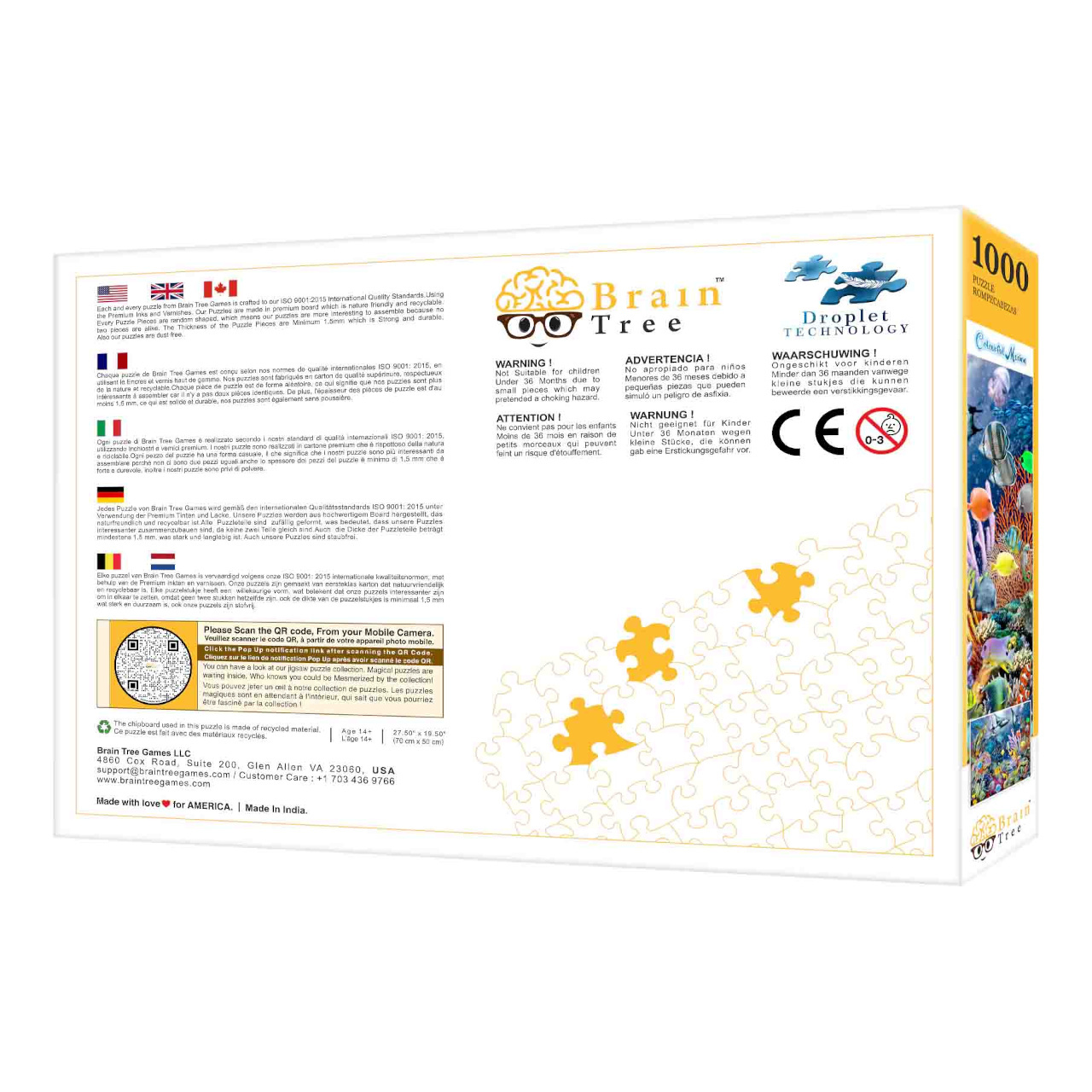 V každém balení naleznete plakát s odpovídajícím obrázkem vytištěným ve stejné kvalitě jako samotné puzzle. Součástí je také několik praktických skládacích kartónových přihrádek, které můžete využít při třídění dílků. Užitečným doplňkem dodávaným spolu se skládačkami je papírový stojan, do kterého můžete usadit víko krabice, abyste mohli při stavbě pohodlně nahlížet na vzorový obrázek. V sadách o 1000 dílcích navíc dostanete i velký a odolný uzavíratelný sáček, který dílky puzzle spolehlivě ochrání před poškozením a ztrátou.